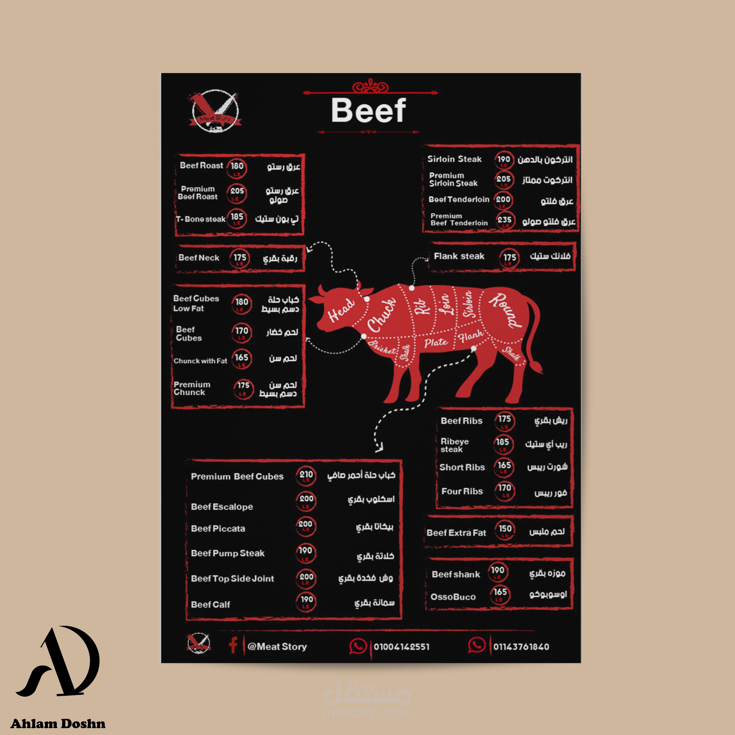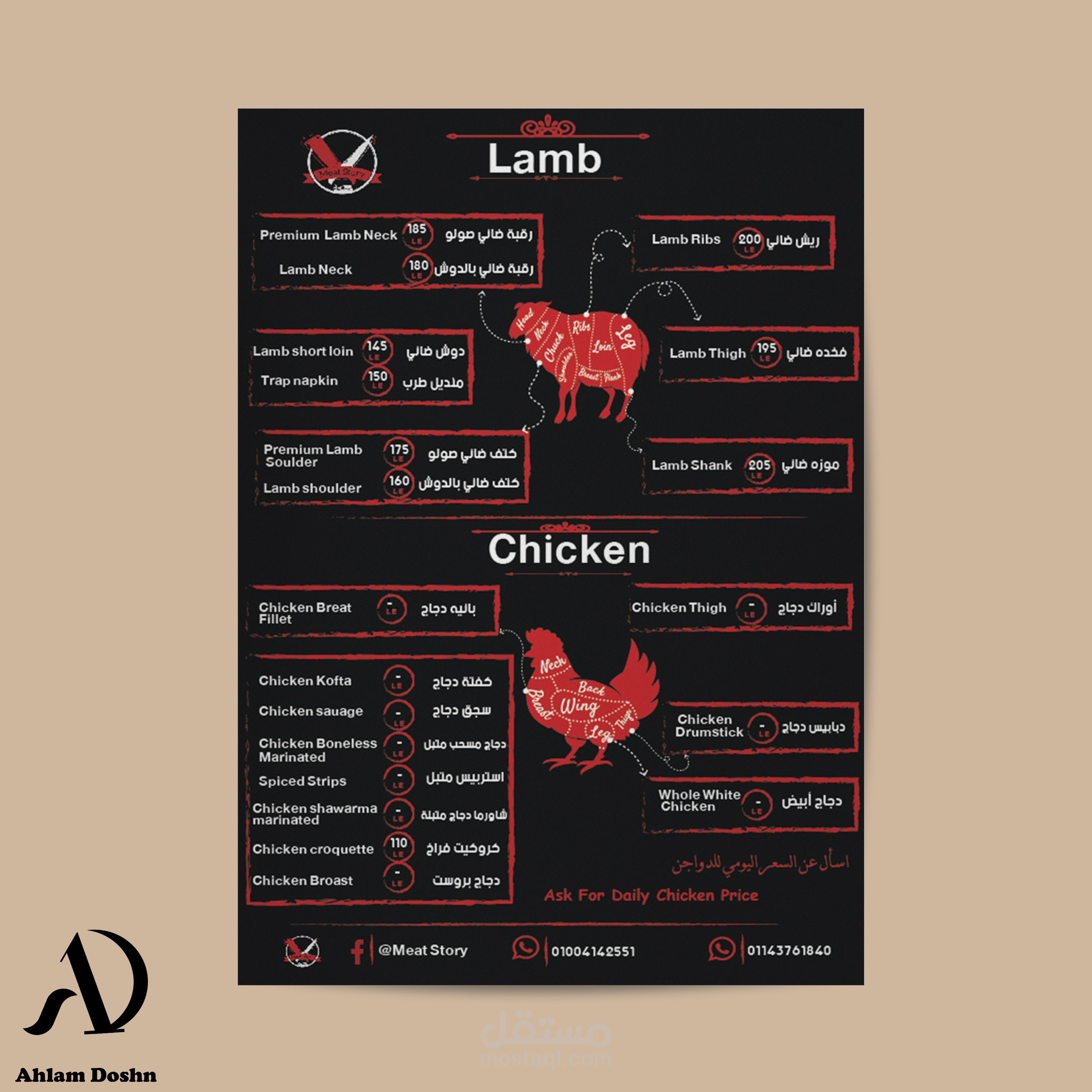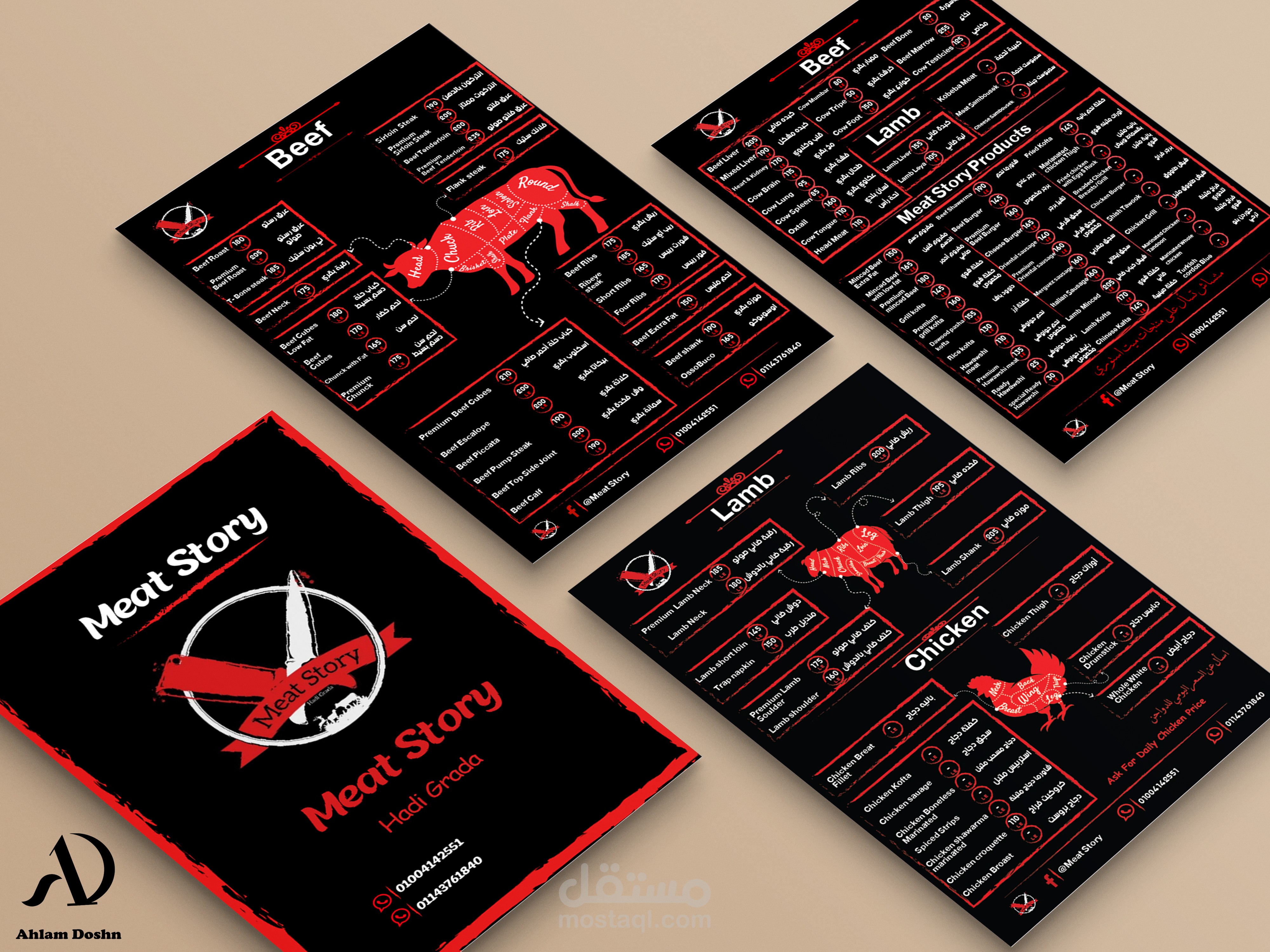 تصميم منيو لمطعم جزارة.