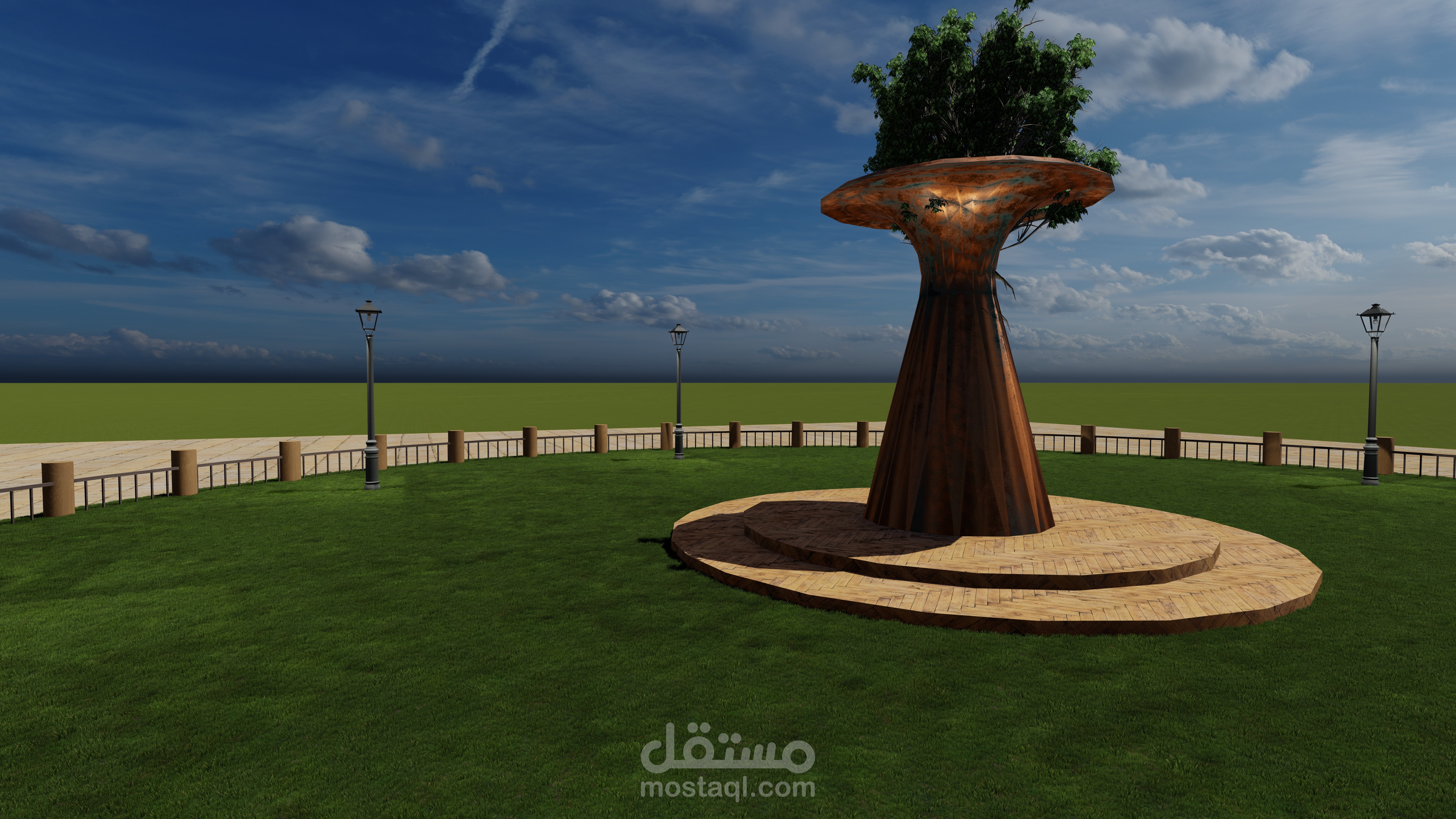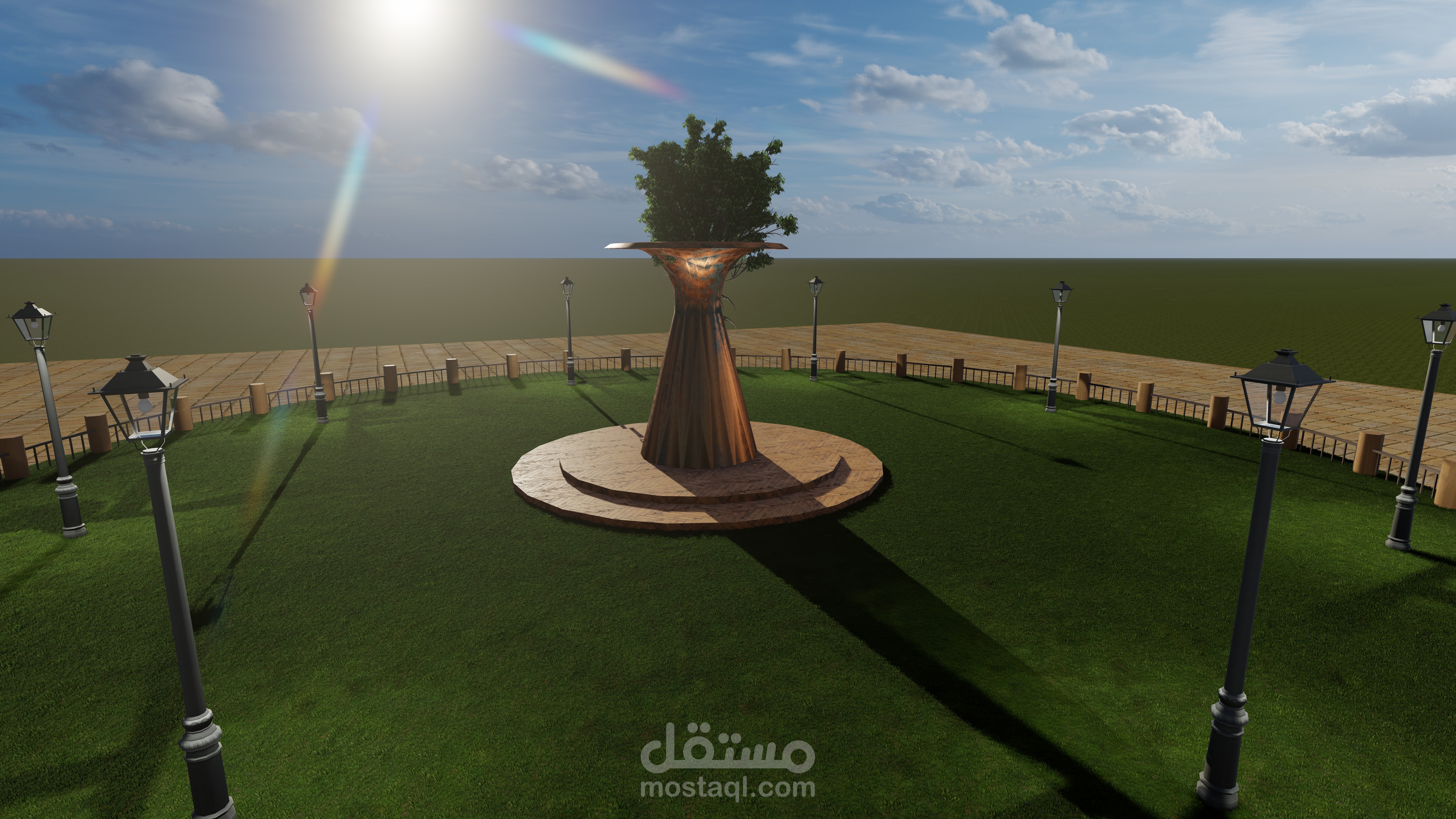 عبارة عن علامة مركزية في حديقة عامة