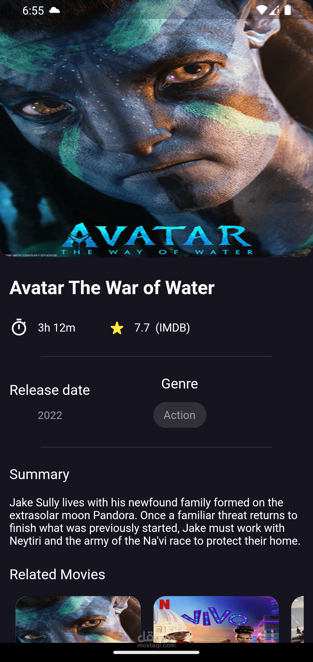 هو تطبيق يسمح للمشاهدين بمشاهده اجدد الافلام عن طريق IMDP API مع واجهة مستخدم سهلة الاستخدام .