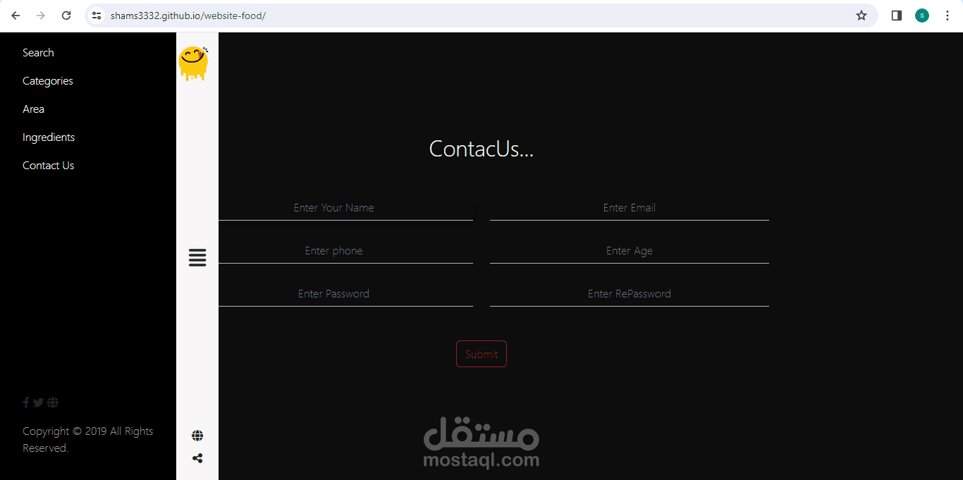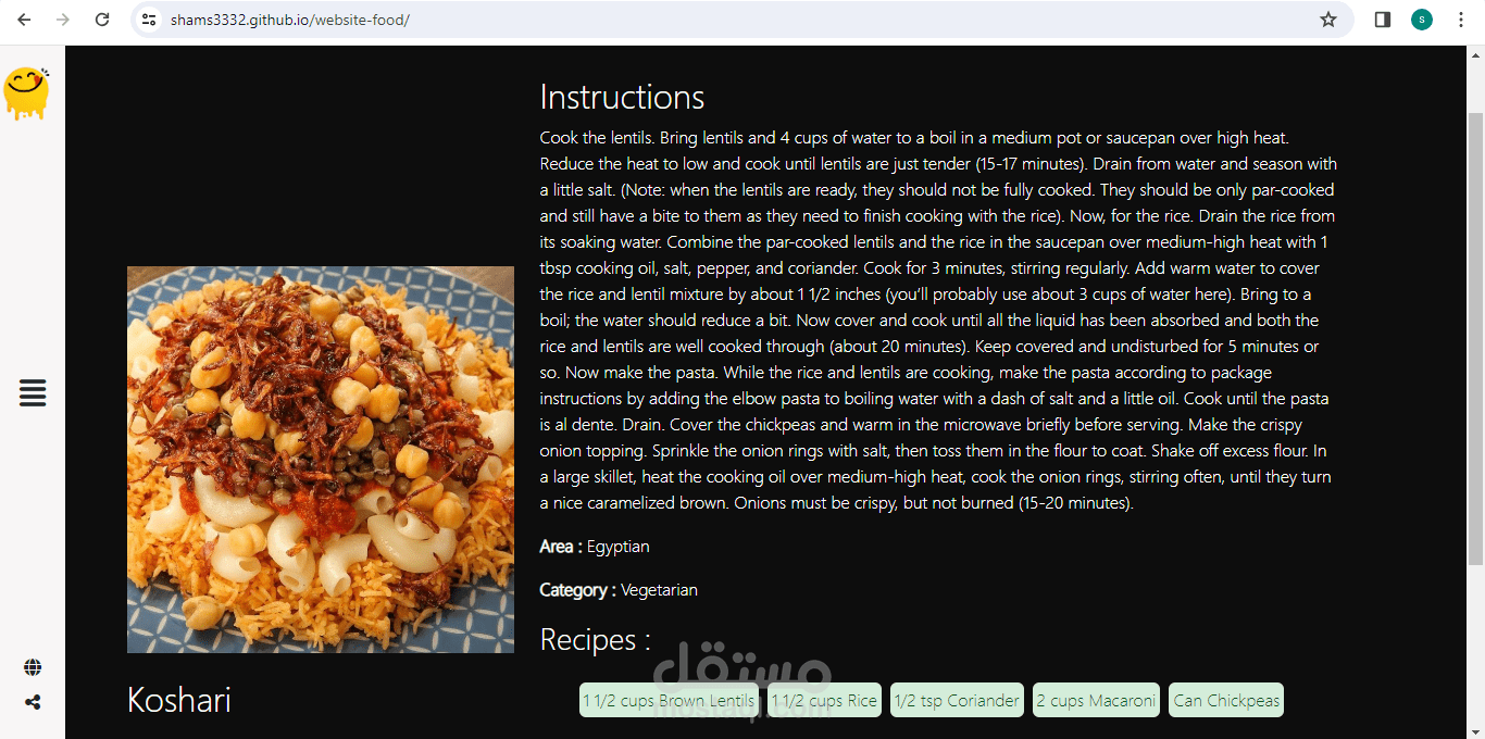This website show categories of food according to area, if you clicked on any food will show ingredients