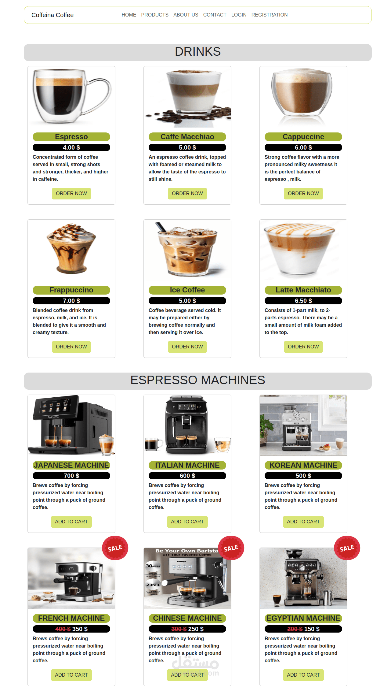 coffee station using html and css and bootstrap