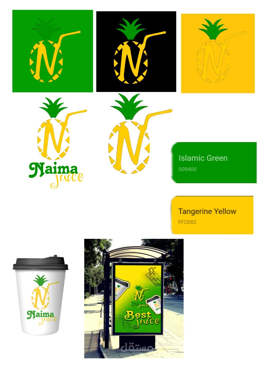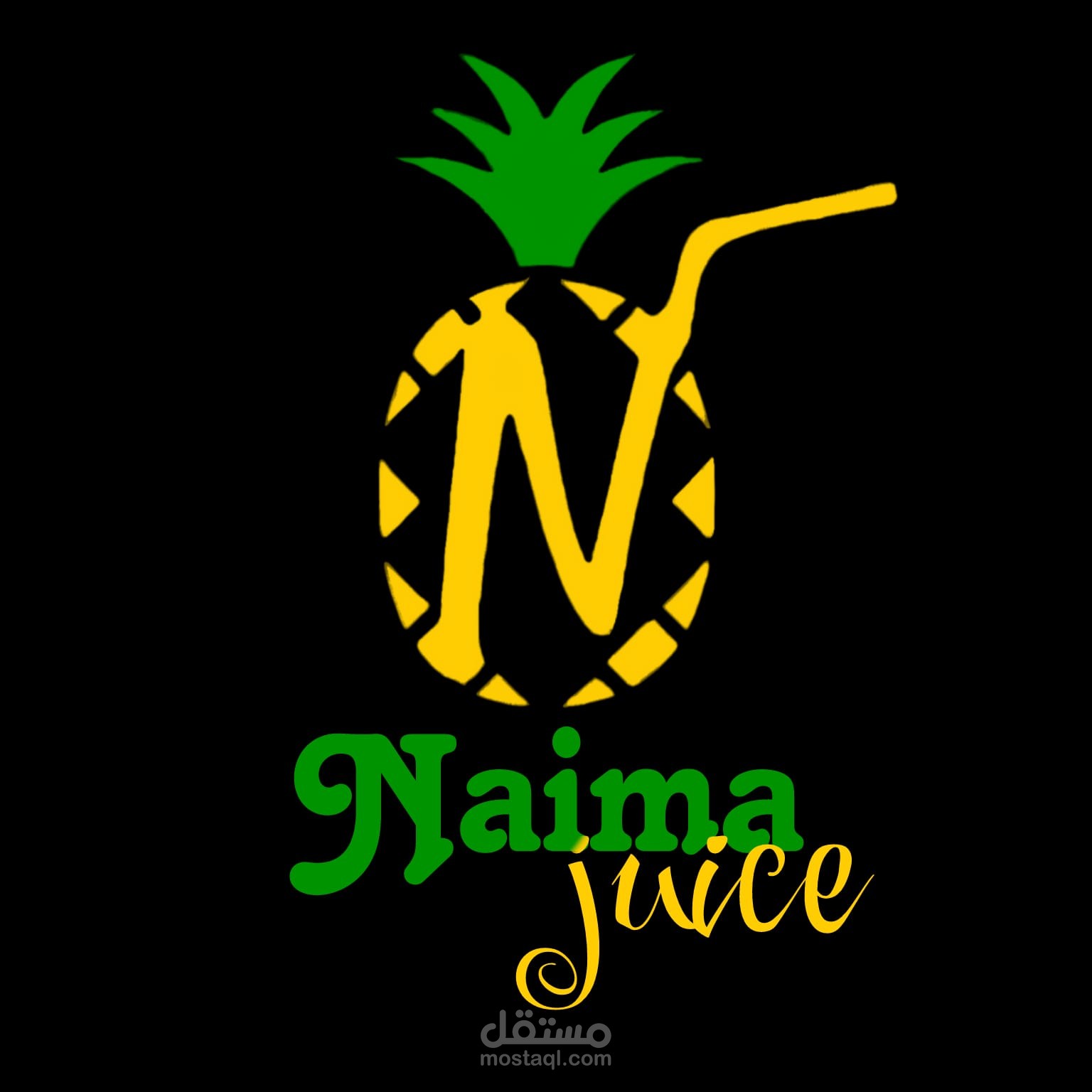 تصميم لوجو لمحل عصيرات باسم naima juice .يرمز الشعار لي فاكهة الاناناس كالفاكهة الاولى للمحل ووسطه حرف N كالحرف الاول لاسم المحل , مرفقا باسم المحل اسفله