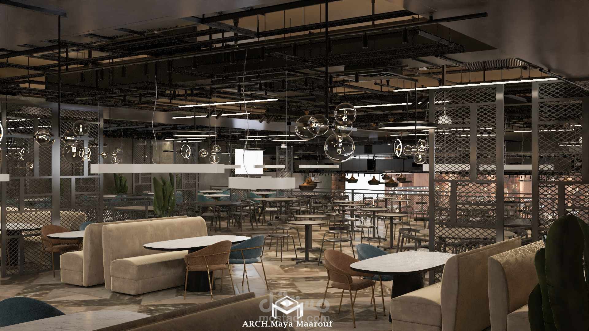 تصميم الطابق الخاص بال VIP الملحق بصالة المطعم الرئيسية