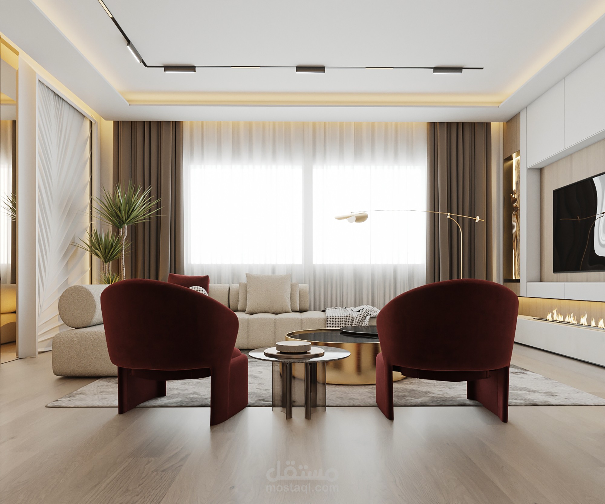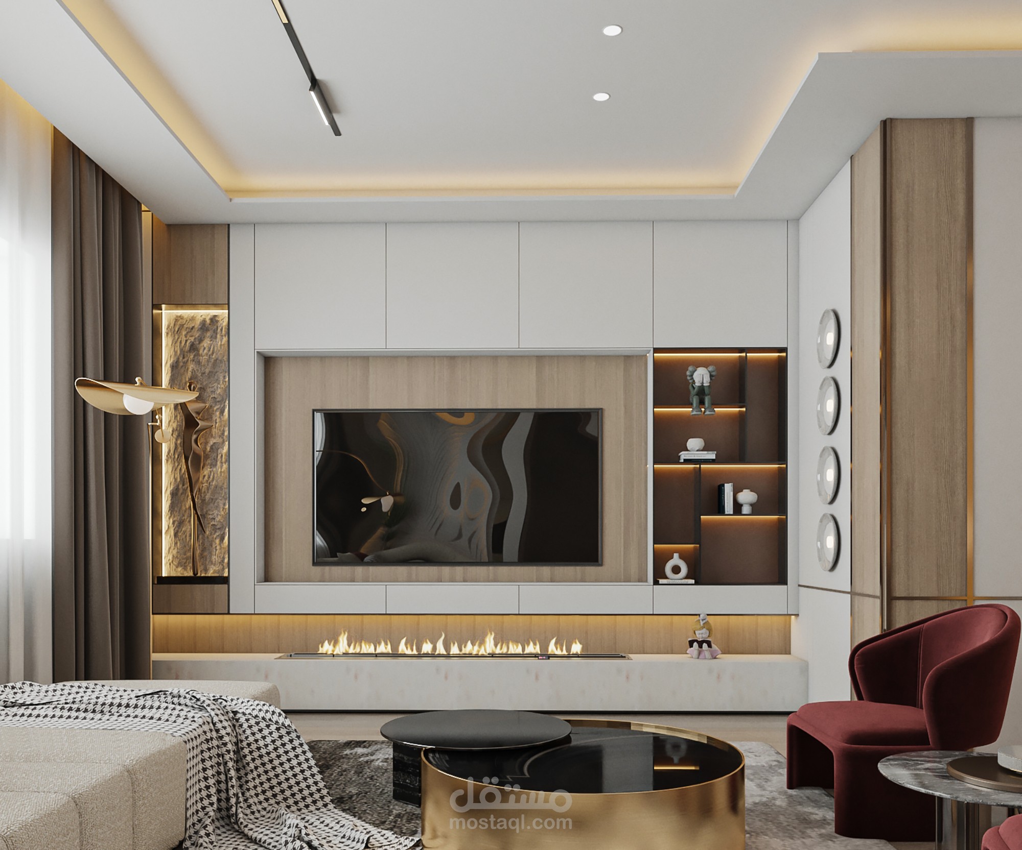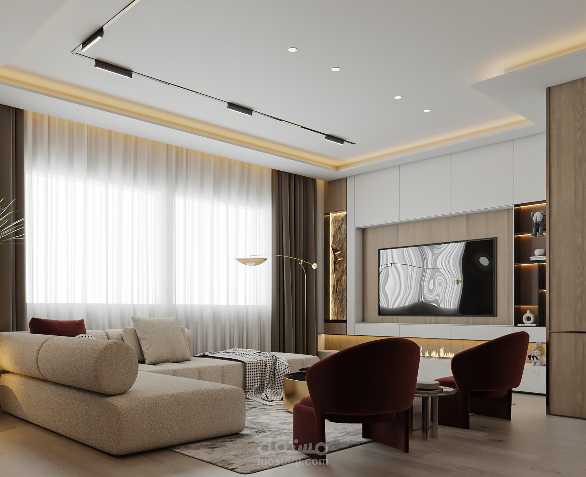 المواد المستخدمة : المواد الاساسية بناء على طلب العميل وباقي المواد بما تتناسب مع الفراغ