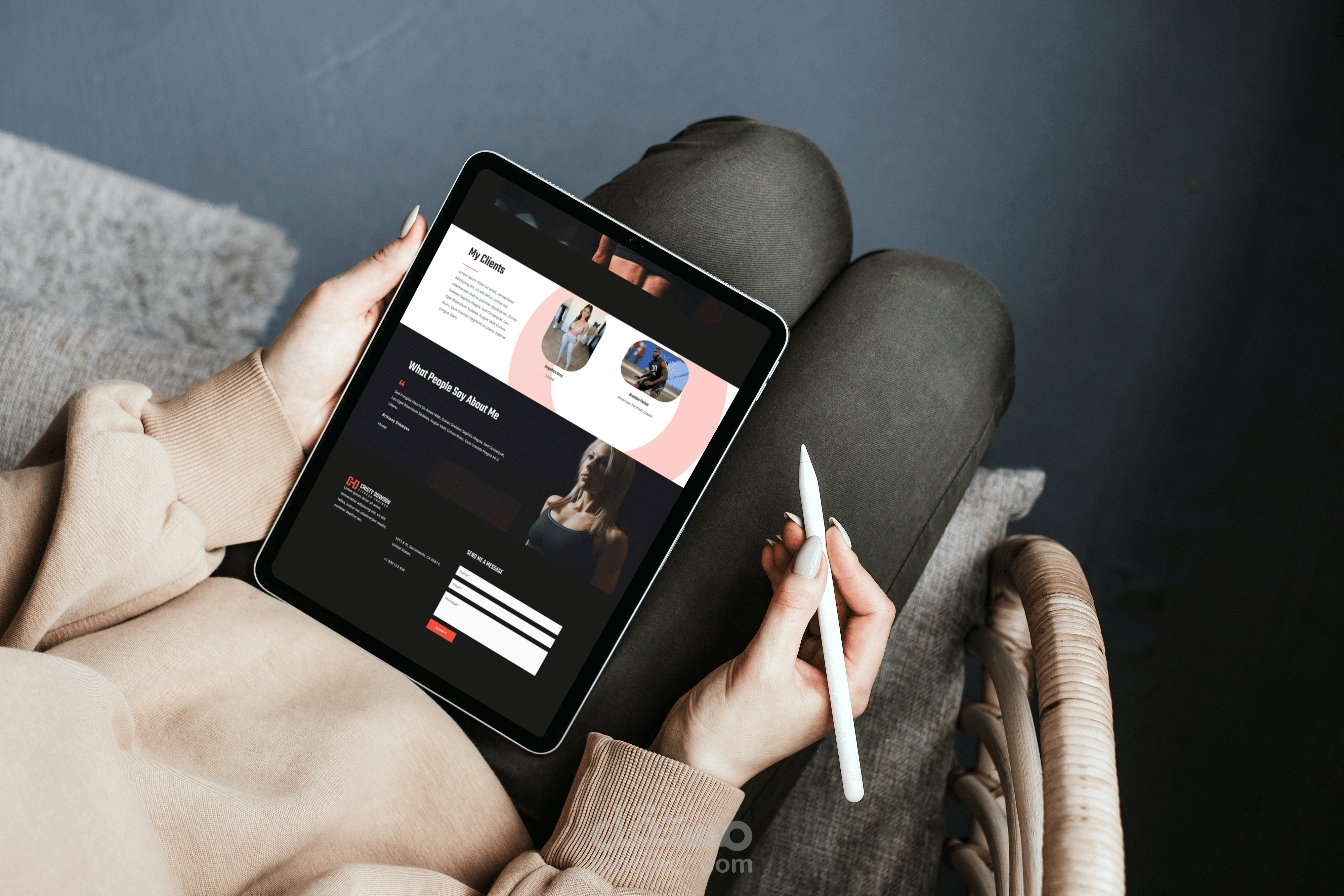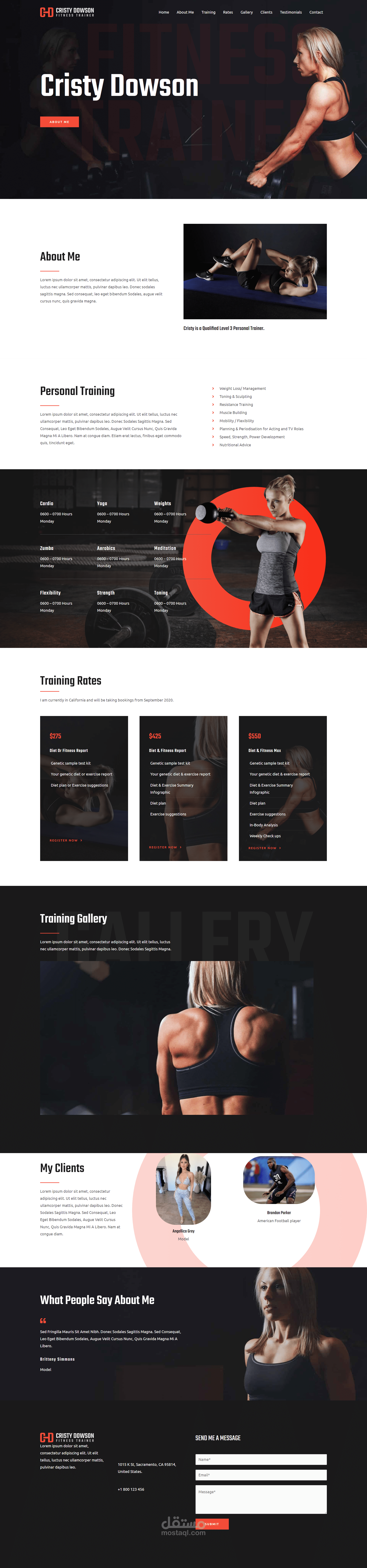 تم تصميم الموقع عن طريق Wordpress وتنصيب ال plugins واضافة لوجو وصور المدربة والعملاء والتعديل في الوجهة من خلال Elementor وعمل motion effects لعناصر الصفحة من خلال Elementor