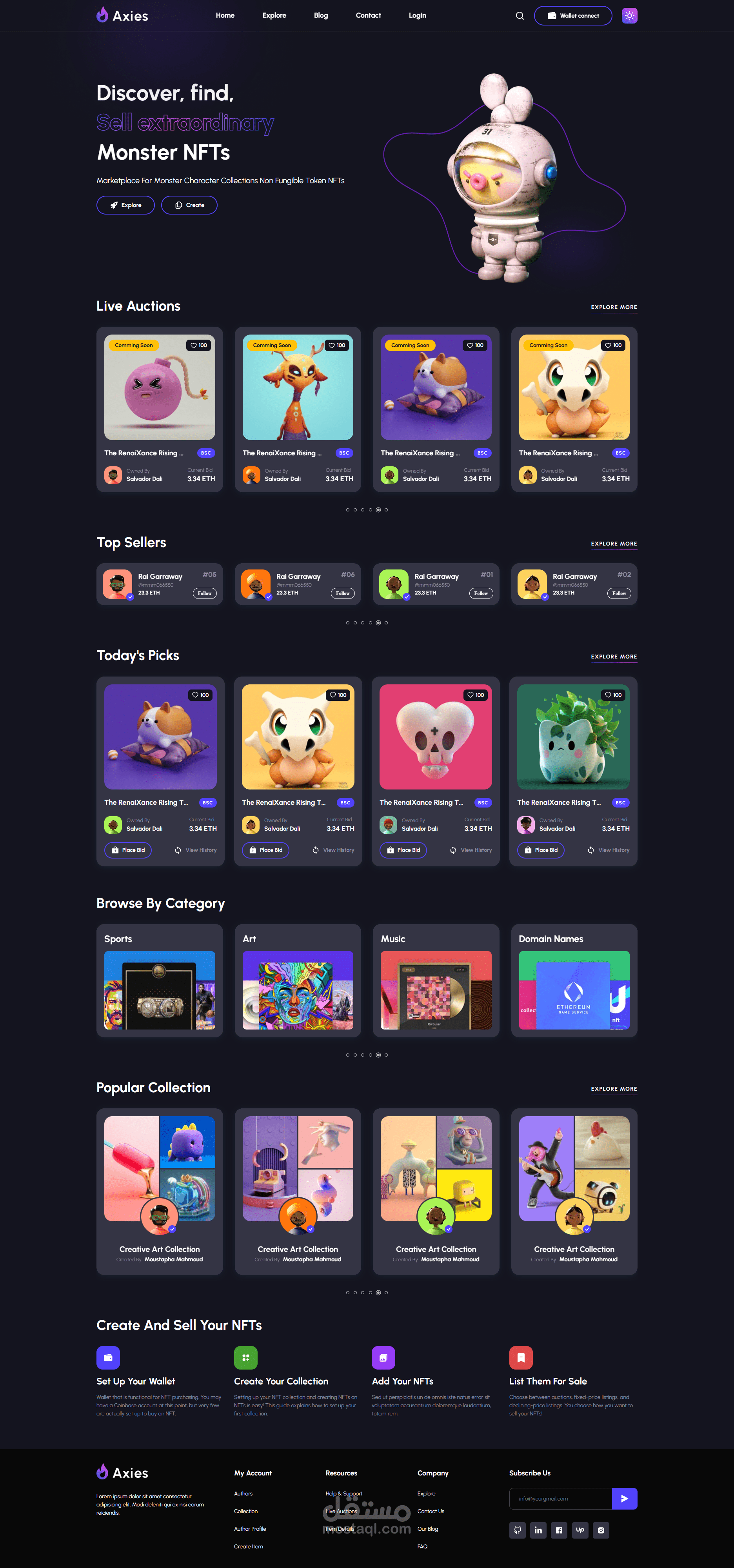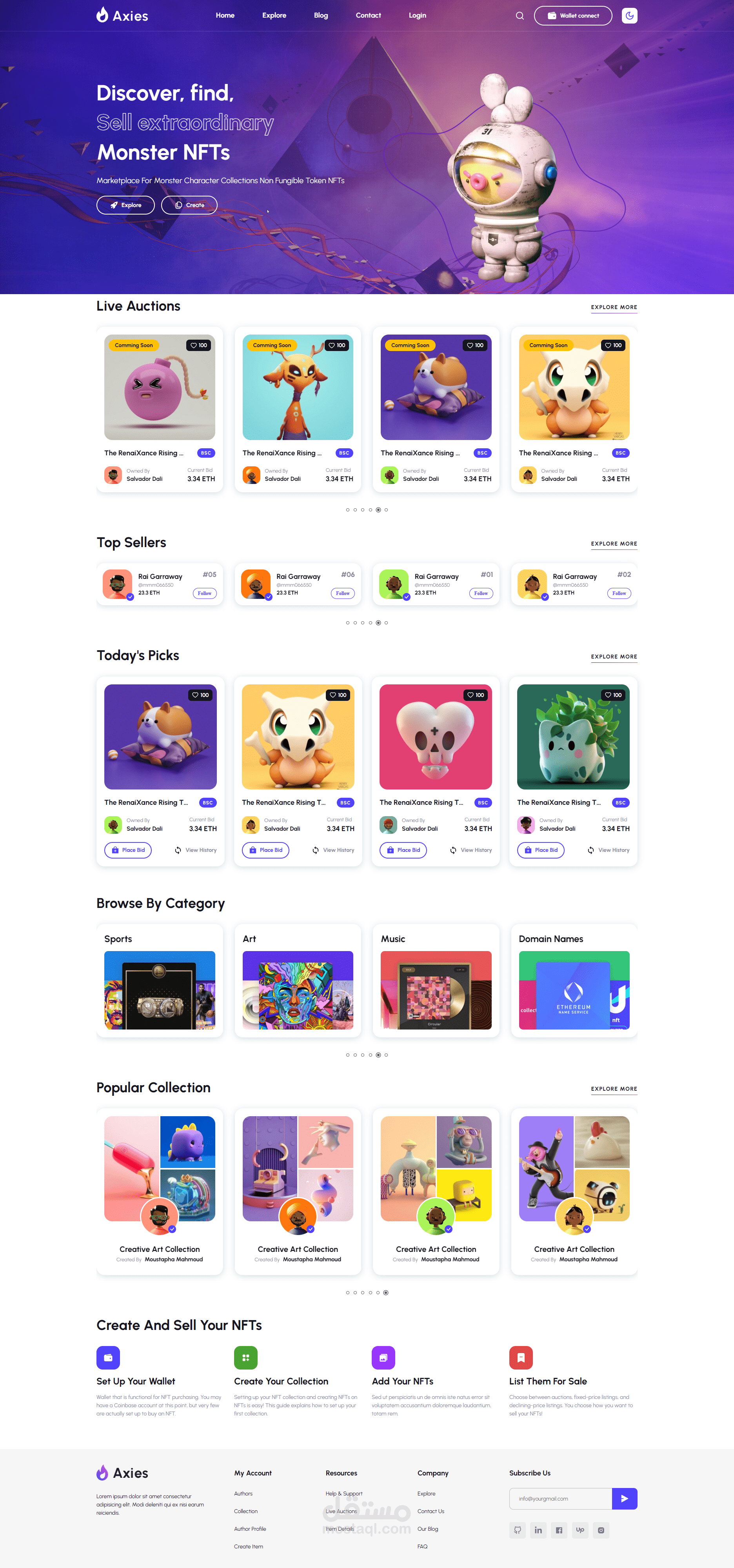 Axies is the NFT Marketplace for traders and creators. Built with NextJS, Bootstrap and Material UI