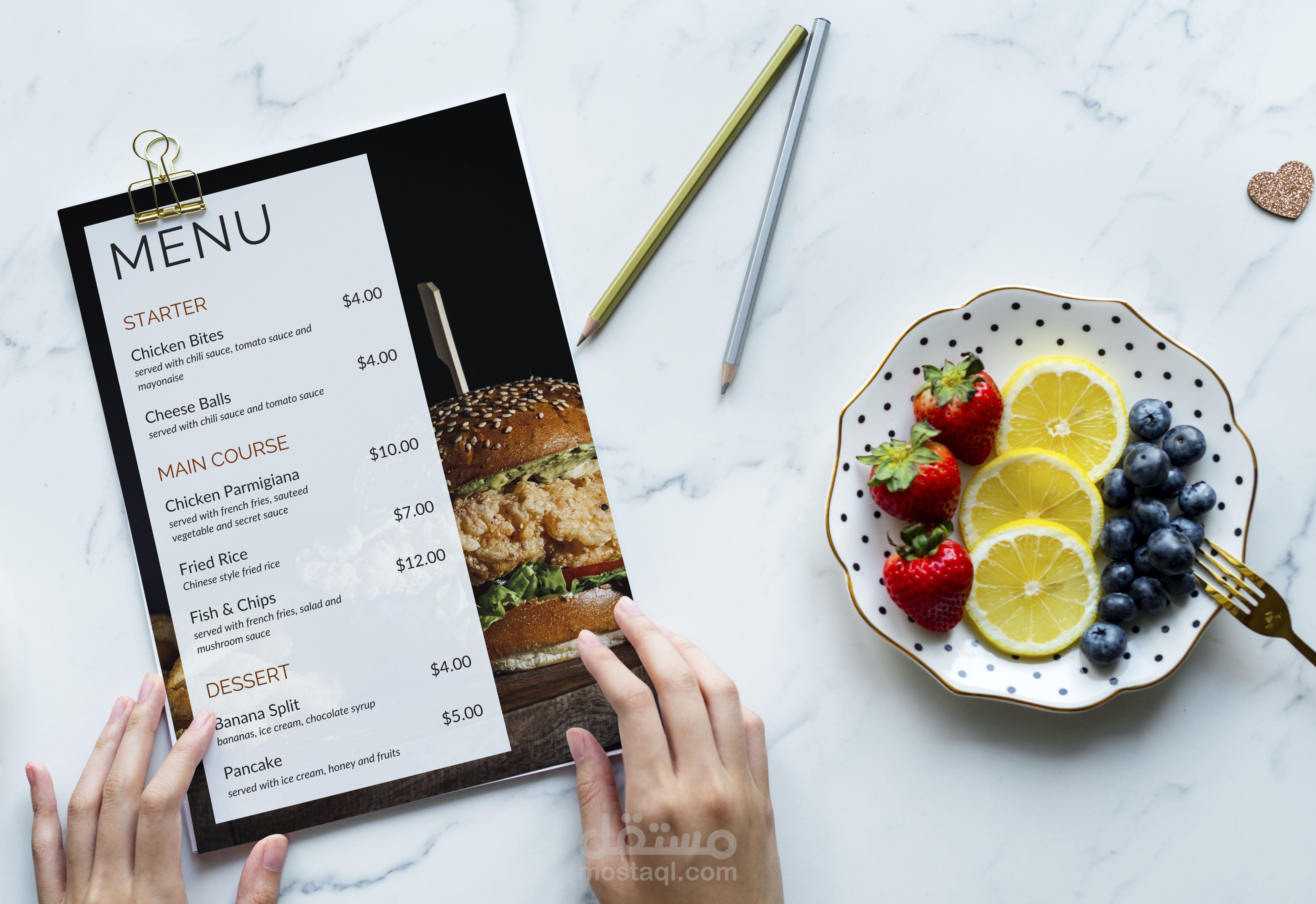 يمكنني عمل تصاميم فريدة لقوائم طعام المطاعم