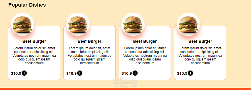صفحة هبوط باستخدام html & css عباره عن restaurant menu تعرض نبذه عنها وبعض الاطعمه التي تقدمها بتصميم مثالي وبسيط