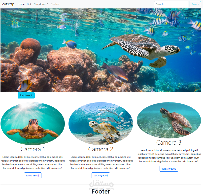 صفحه ب ال boot starp تحتوي علي الnav bar وfooter ,header