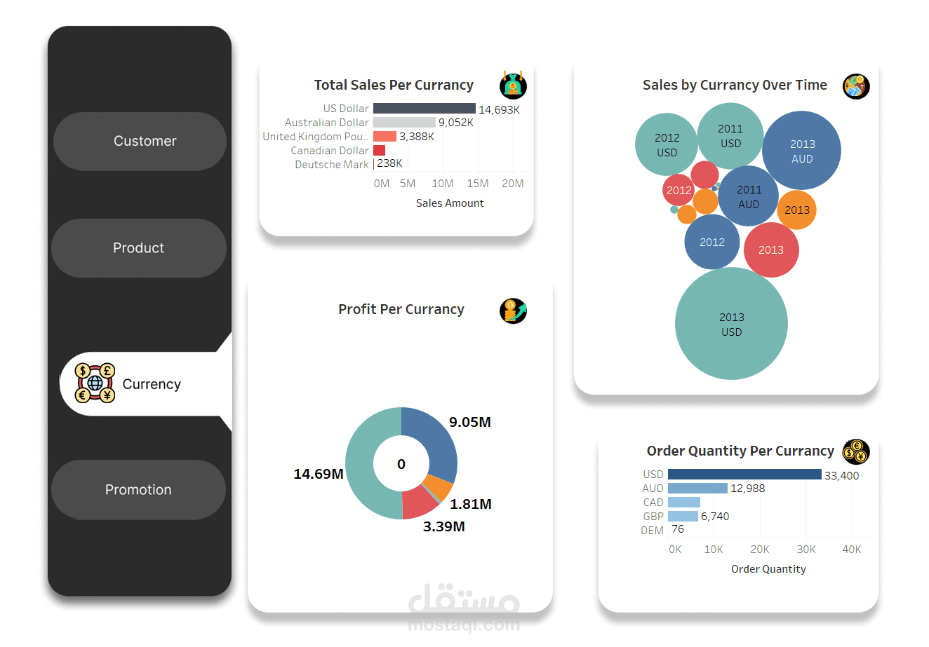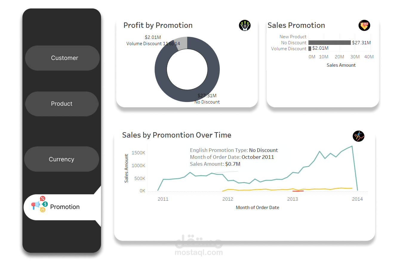 توضح الداشبورد مجموعة من insight و KPIs التي تساعد في اتخاذ القرارات لتحسين المبيعات
