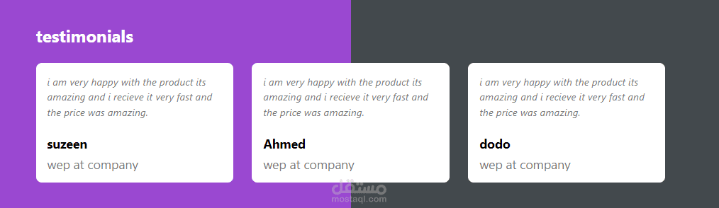- صفحة Testimonials وهي خاصه باراء العملاء في خدمات الوكاله
