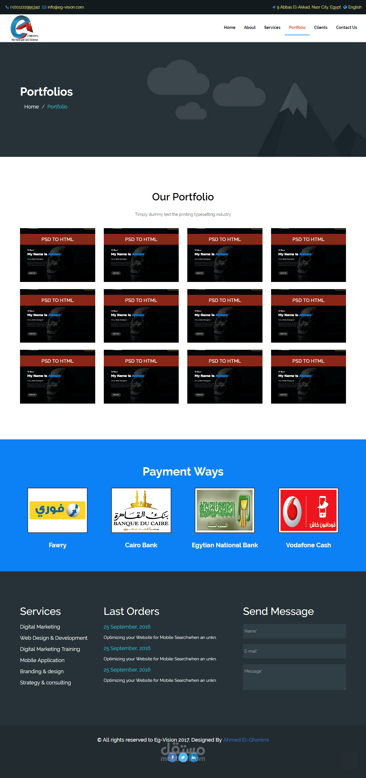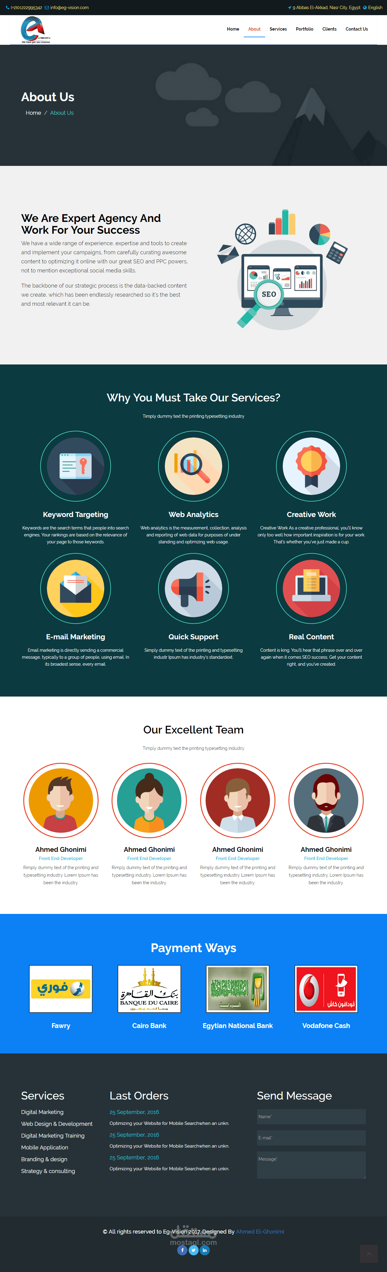 تصميم موقع الكتروني مكون من 6 صفحات بجودة عاليه جدا لشركة تسويق بجمهورية مصر العربية