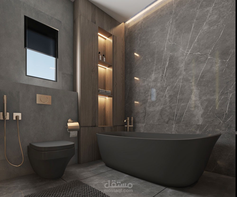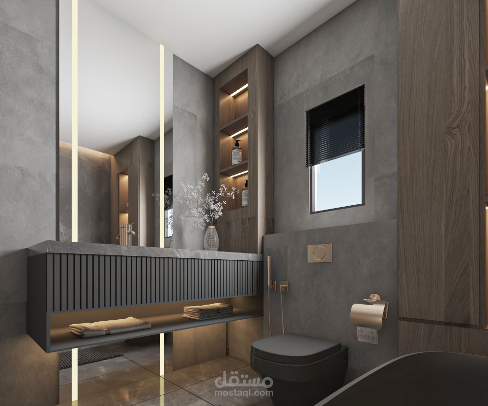 تصميم وديكور داخلي لحمام في المملكة العربية السعودية