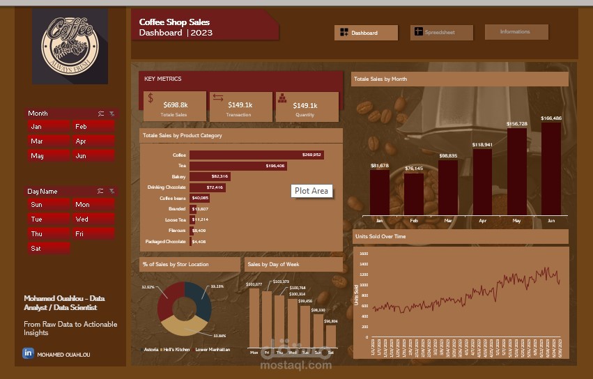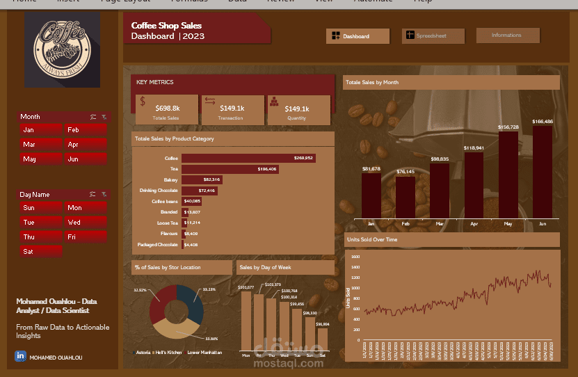 تعد "لوحة معلومات مبيعات المقهى" أداة تصور بيانات شاملة وبديهية بصريا مصممة لتوفير رؤى أساسية حول أداء واتجاهات عمليات مبيعات المقهى. يهدف هذا المشروع إلى تعزيز عملية صنع القرار لأصحاب المقاهي والمديرين وأصحاب المصلحة من خلال تقديم المعلومات ذات الصلة والقابلة للتنفيذ بطريقة واضحة ويمكن الوصول إليها.