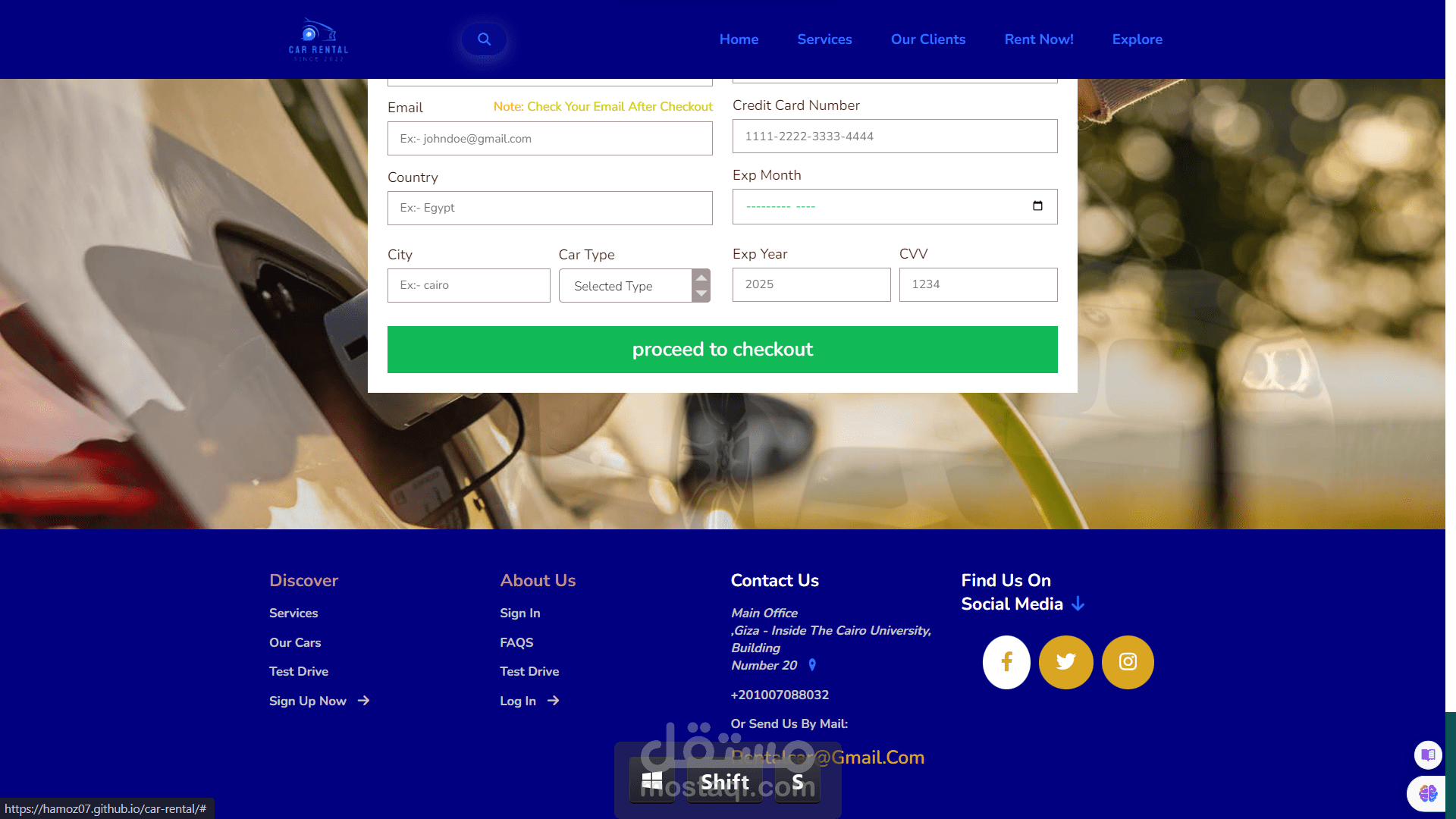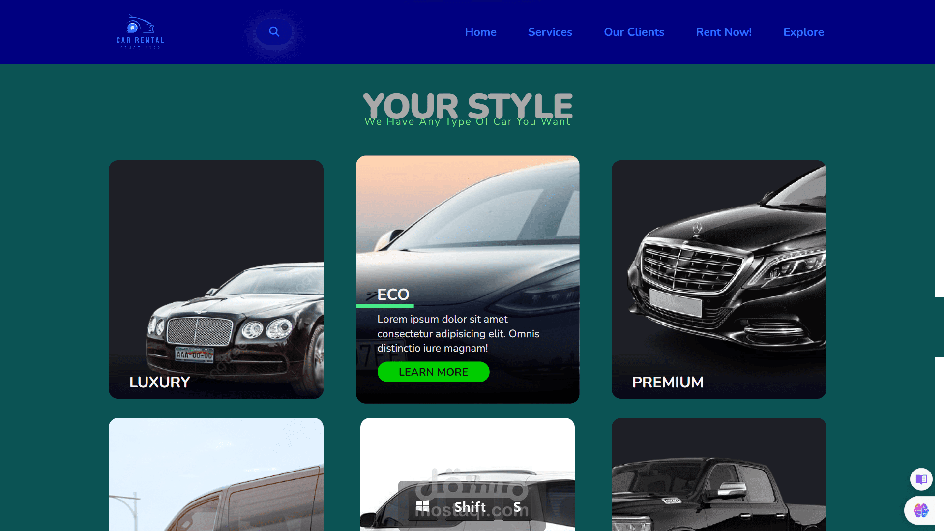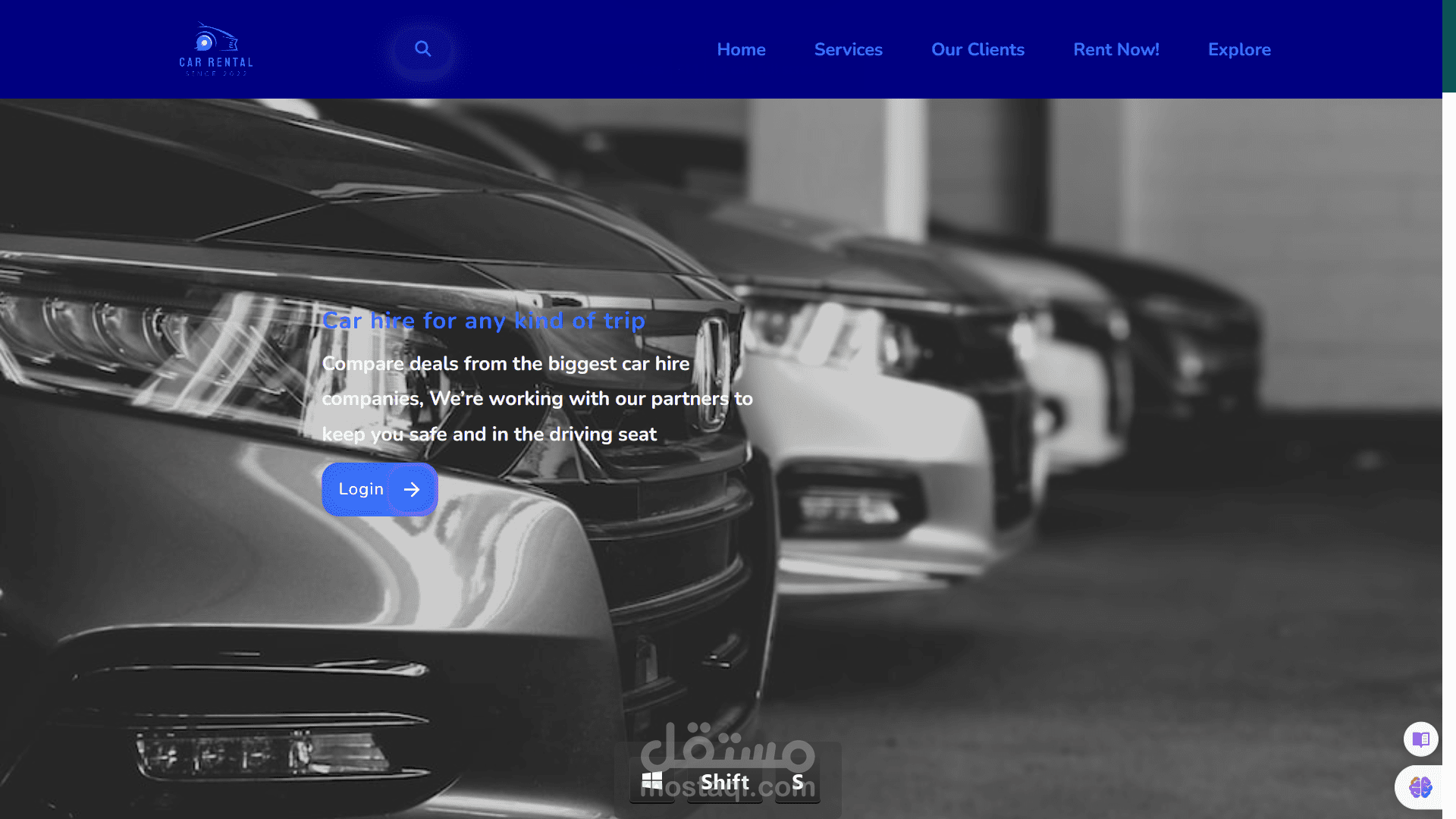 موقع استءجار السيارات باستخدام Html & css فقط ، متجاوب على جميع الشاشات ، يمكنك ان تراه بالكامل من خلال الفيديو المرفق ، يمكنك رؤيته من هنا: https://hamoz07.github.io...