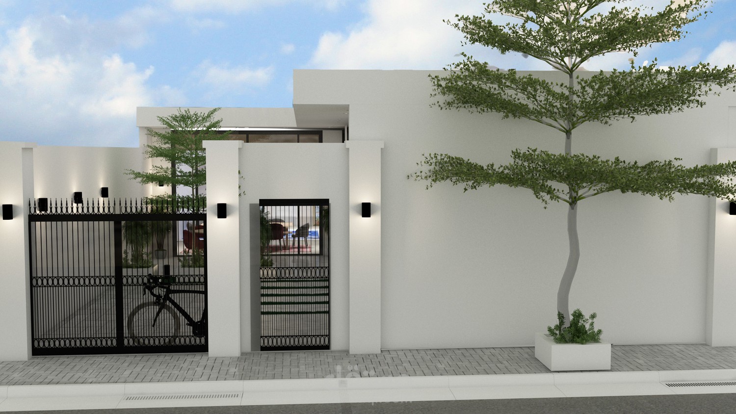 الشاليه على شكل حرف L بحديقة خارجية صغيرة