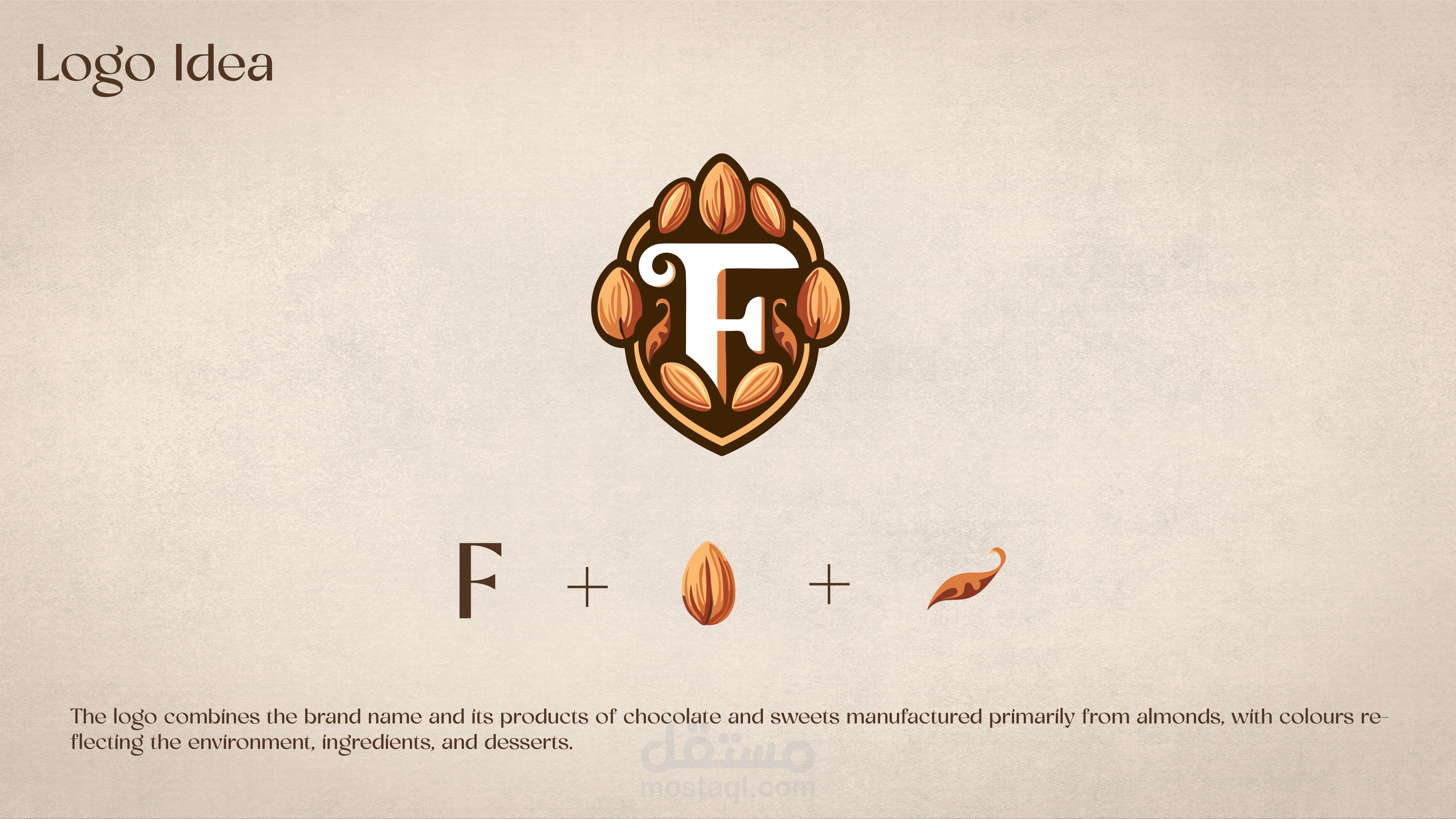 تصميم لوغو و هوية بصرية لمحل حلويات يعتمد بشكل اساسي على اللوز
