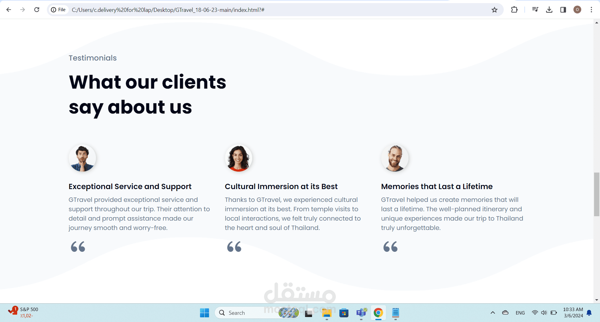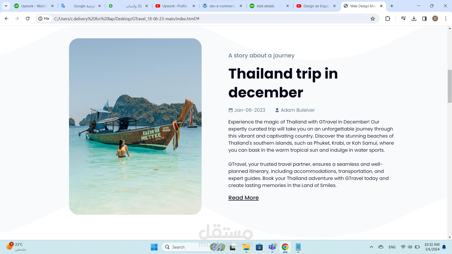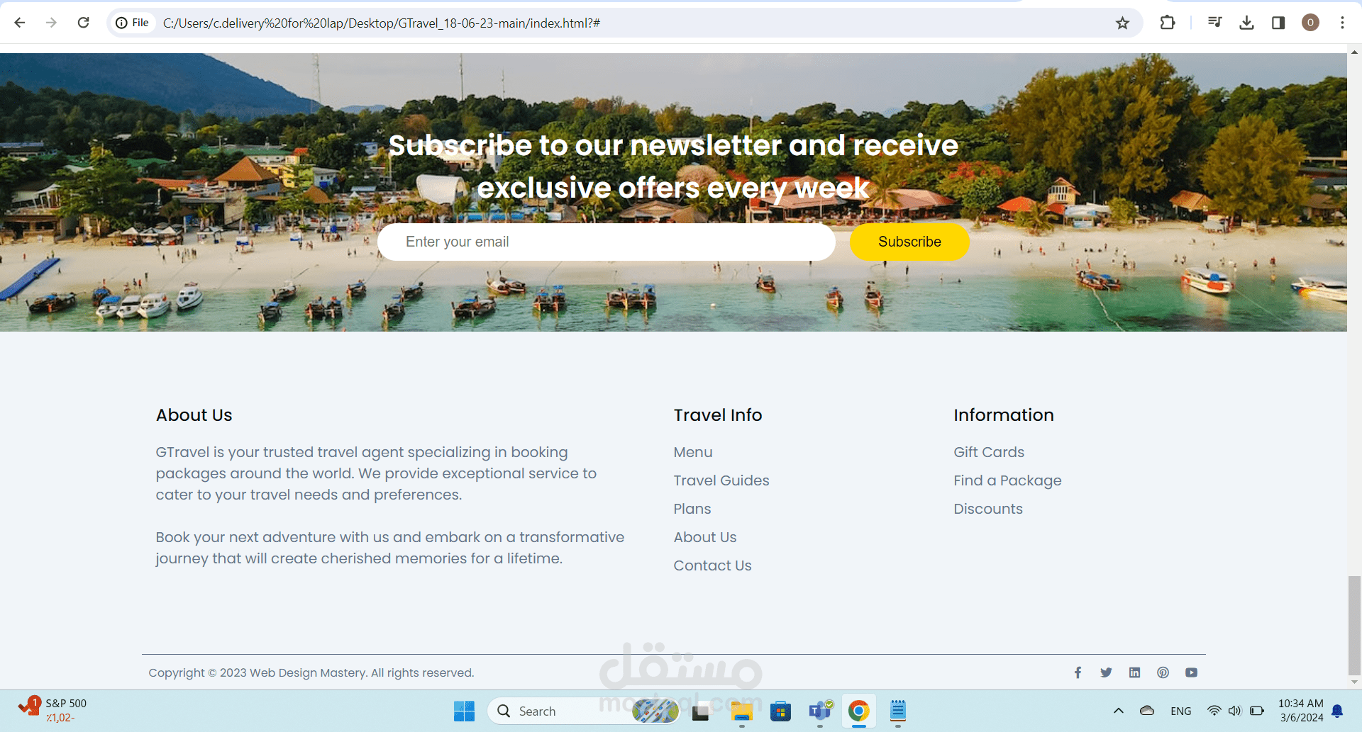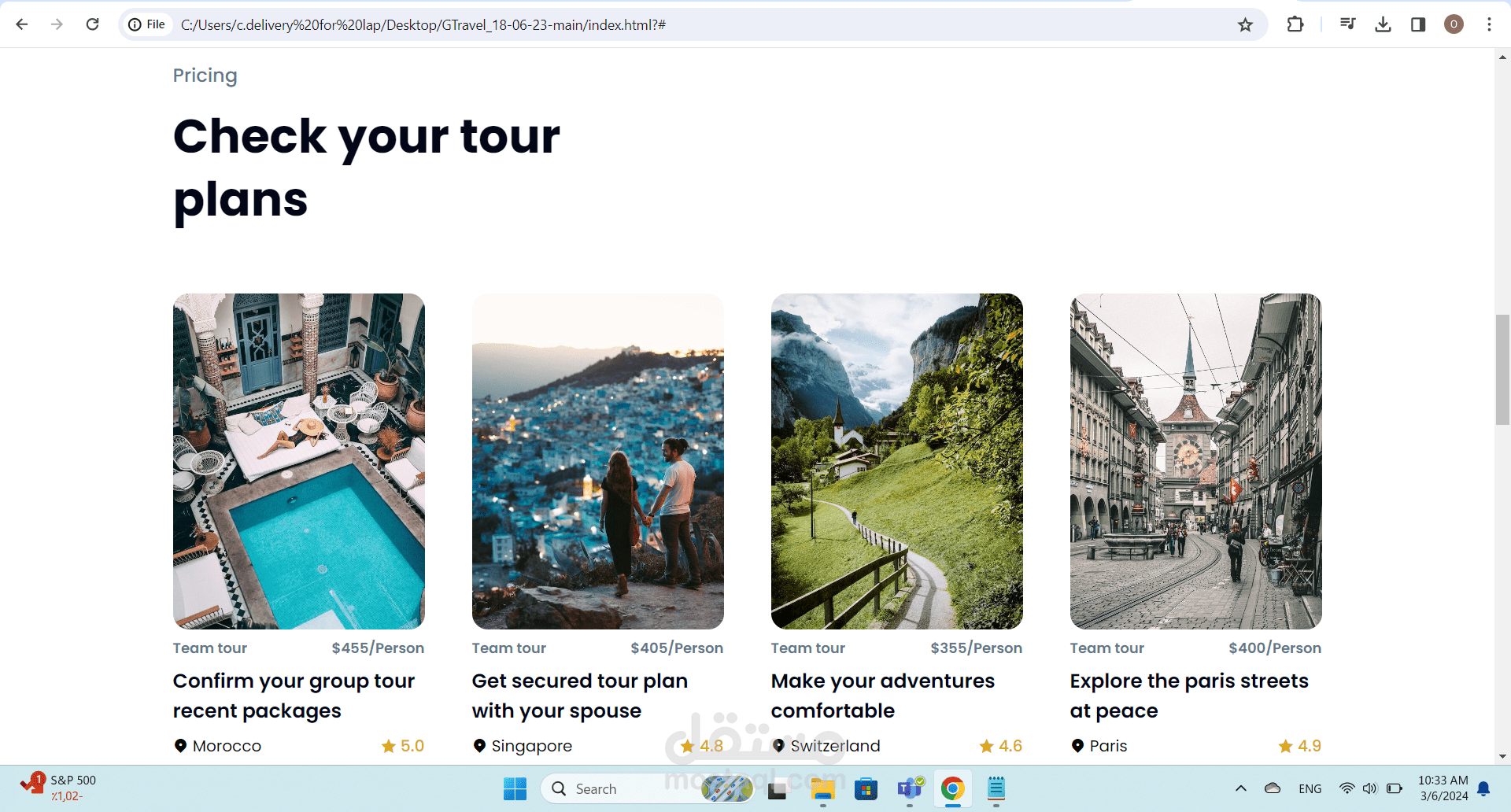 The main web page of the G Travel project consists of various elements that display information in an attractive and user-friendly manner. The page is designed using HTML and CSS to achieve attractive visual layout and comfortable user experience.