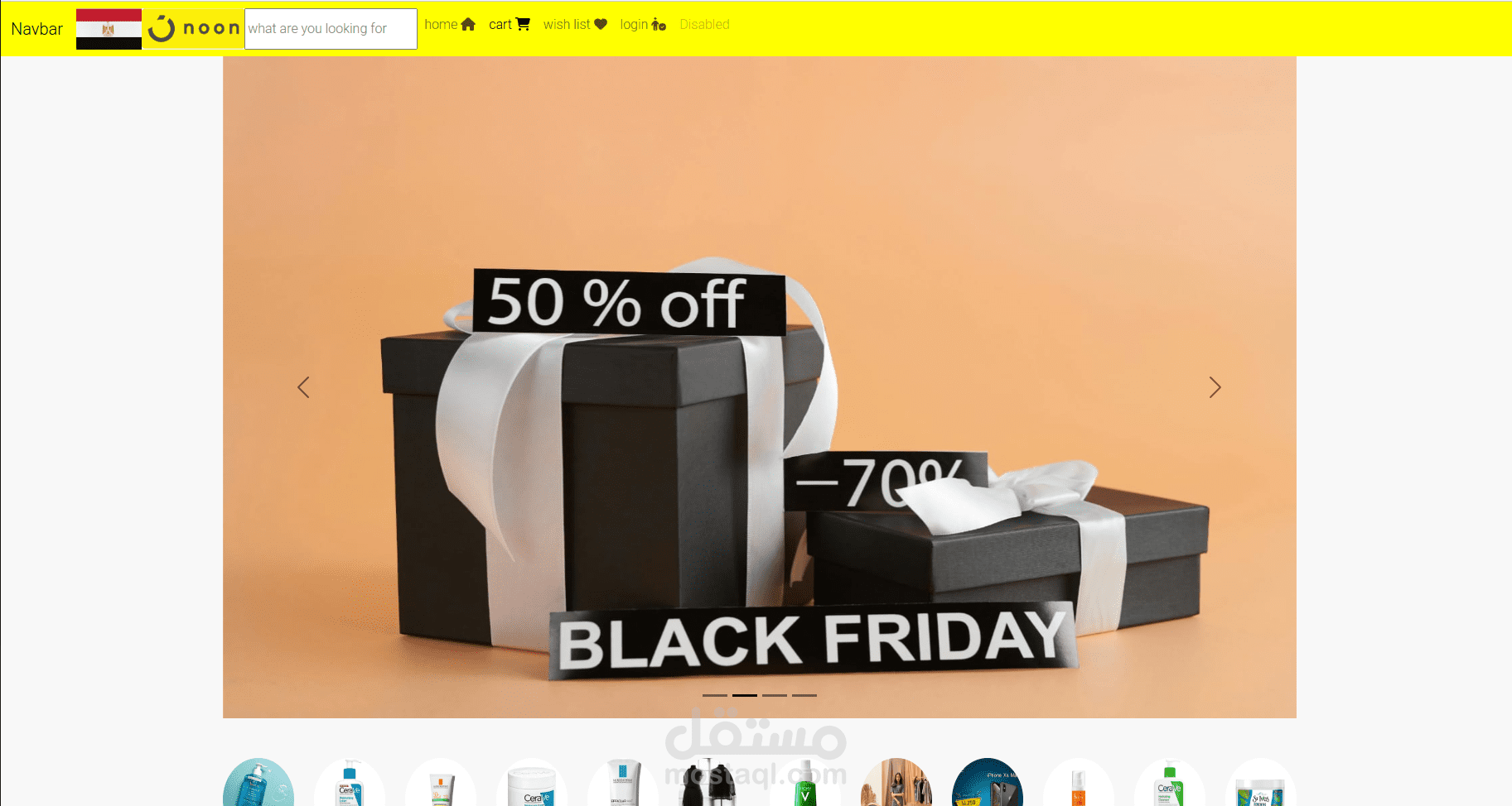 It's just a simple jQuery project. The user can create an account and log in with authentication to enter and find products like Noon.