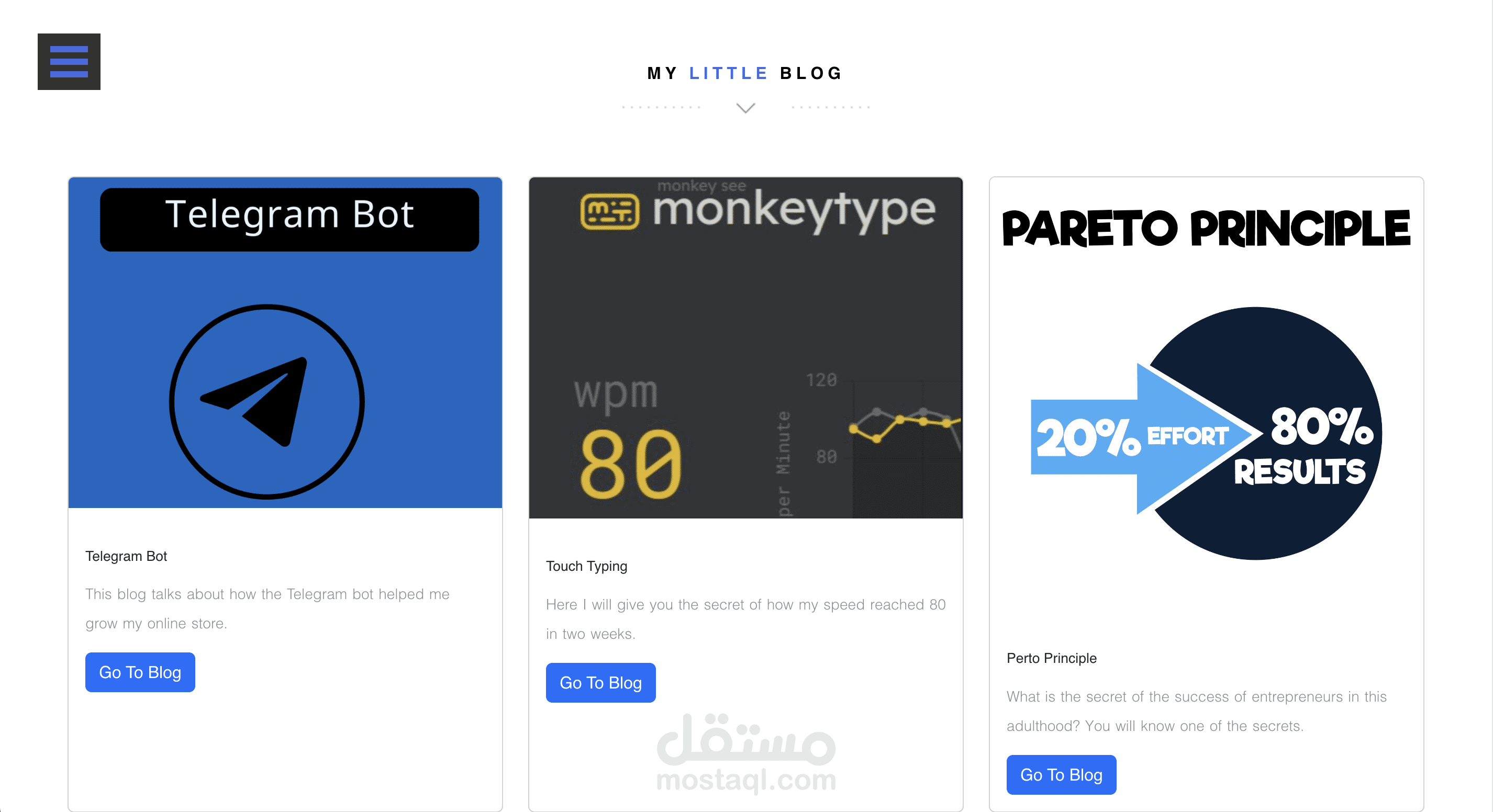 - شريط التنقل Navbar: يحتوي هذا القسم على الشعار والقائمة وزر تسجيل الدخول. تسمح القائمة للمستخدم بالانتقال إلى صفحات مختلفة، مثل الصفحة الرئيسية، وصفحة الخدمات، وصفحة المقالات، وصفحة الاتصال.