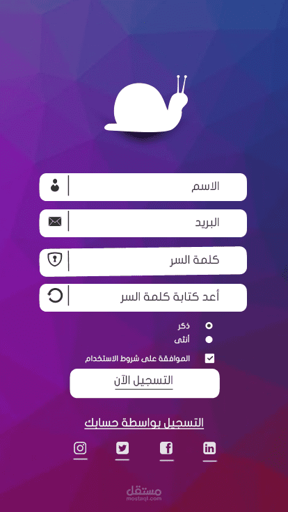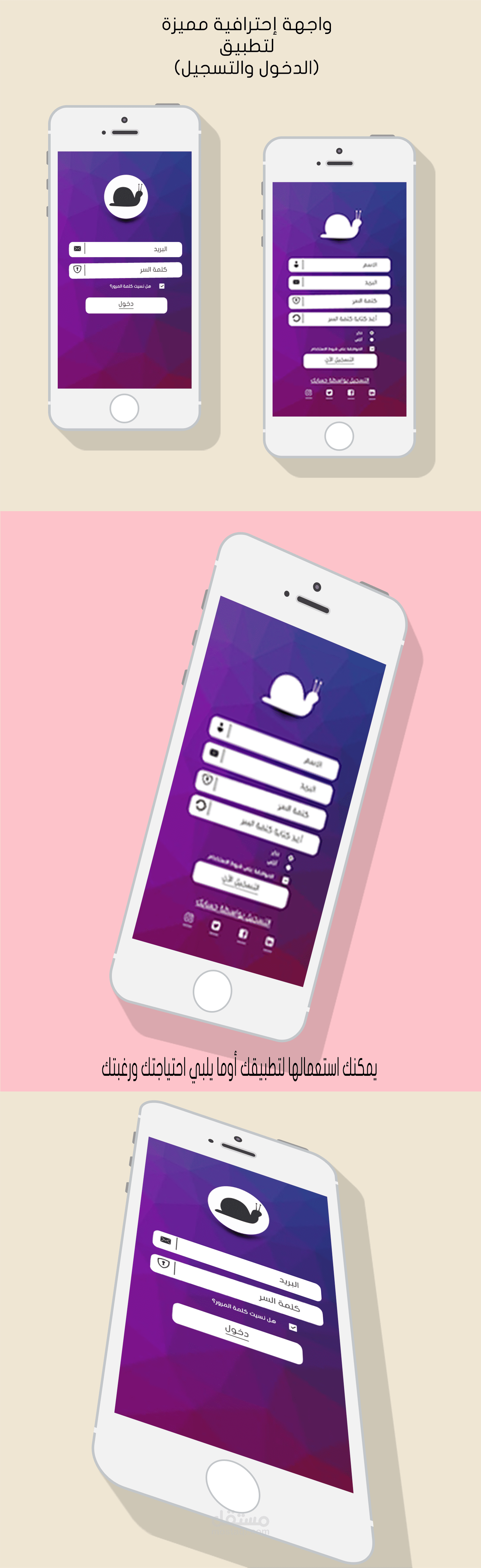 - جميع وجهات التطبيق (تسجيل الدخول وتسجيل حساب جديد)