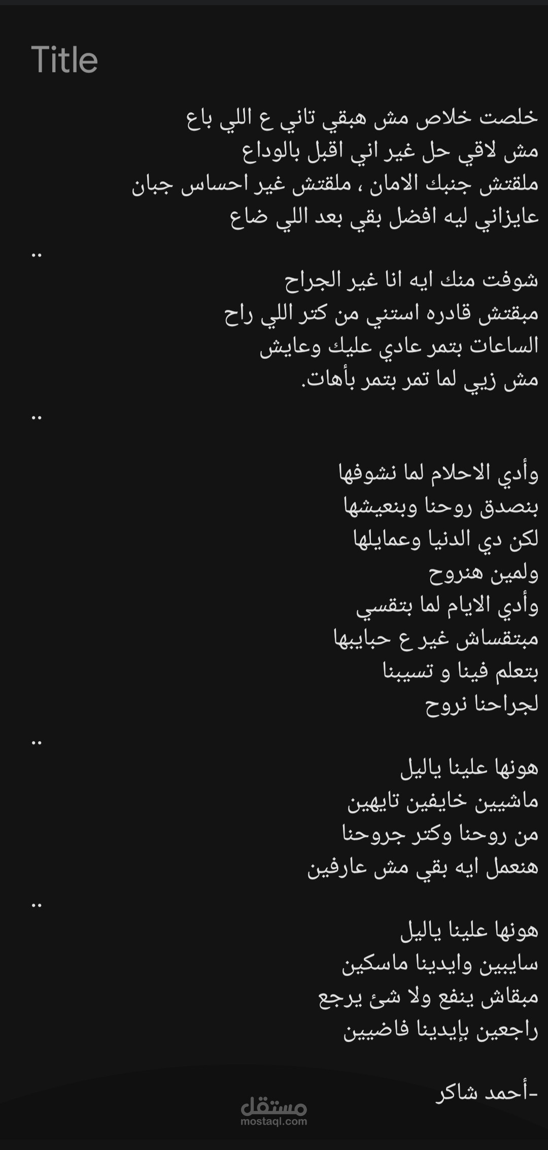 بكتب شعر باللغة العربية الفصحى وبالعامية، وكمان بكتب أغاني، ودي بعض أعمالي المتواضعة.