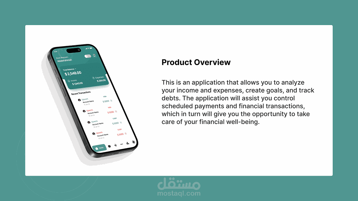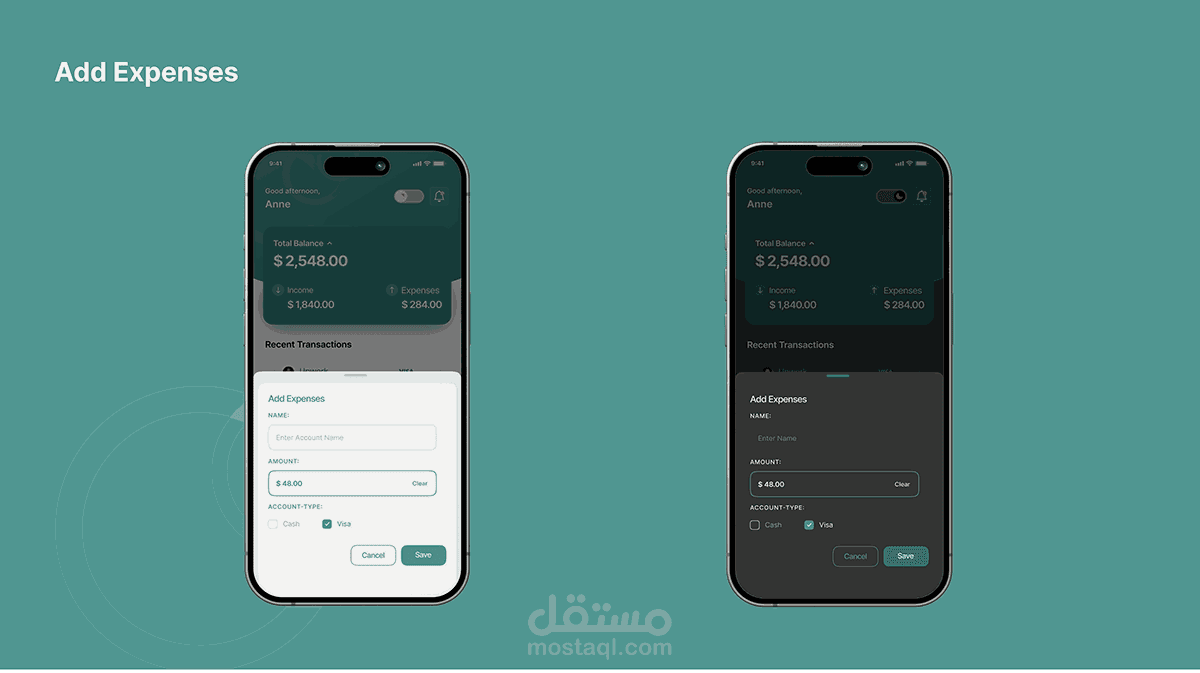 تصميم تجربة المستخدم للمستخدم: قمت بتصميم واجهة المستخدم لتطبيق "My Expenses"، وهو تطبيق شامل لتتبع النفقات المالية، مع التركيز على إنشاء تجربة بصرية جذابة وسهلة الاستخدام للمستخدمين لإدارة شؤونهم المالية بكل سهولة.