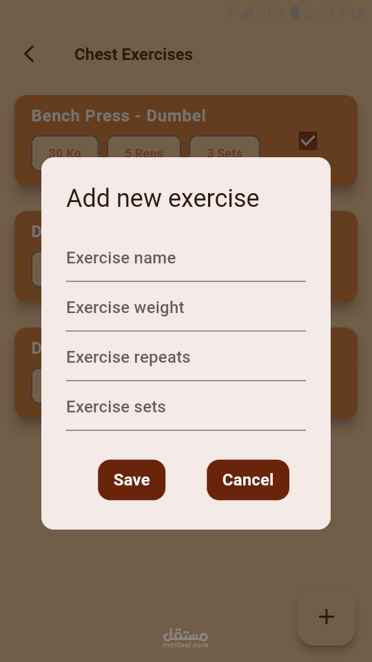حافظ على لياقتك دون عناء مع تطبيقنا سهل الاستخدام. ابدأ رحلة اللياقة البدنية الخاصة بك من خلال تتبع التمارين اليومية على واجهة بديهية تعرض الأيام المكتملة بألوان نابضة بالحياة. يمكنك بسهولة إضافة التدريبات والتمارين أو تعديلها أو حذفها، حيث يمكن تخصيص كل منها بالوزن والممثلين والمجموعات. لا يلزم الاتصال بالإنترنت؛ يتم تخزين بياناتك بشكل آمن على جهازك. يدعم تطبيقنا تجربة سلسة، كاملة مع شاشة البداية والتنقل السهل خلال الأيام والأشهر. استمتع بسهولة مراقبة تقدمك، مع القدرة على التراجع عن عمليات الحذف وتلقي التعليقات في الوقت الفعلي. بفضل التصميم الأنيق والميزات التي يمكن الوصول إليها والوظائف دون الاتصال بالإنترنت، أصبح تحقيق أهداف اللياقة البدنية الخاصة بك أسهل من أي وقت مضى. قم بالتنزيل الآن وابدأ في طريق شخصي وفعال وممتع نحو العافية.
