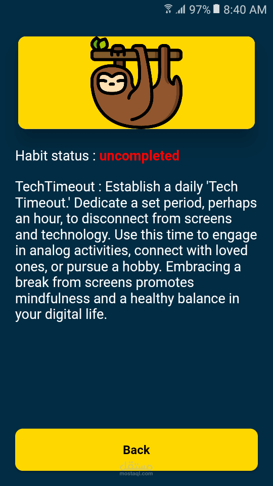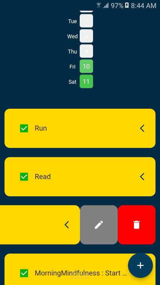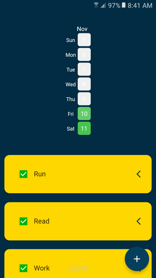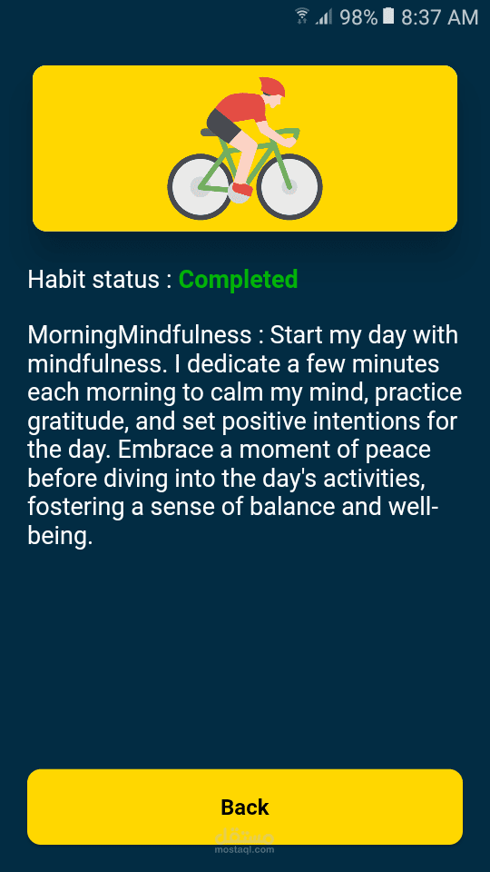 "Habit Tracker" هو تطبيق سهل الاستخدام مصمم لمساعدة المستخدمين على تنمية عادات يومية إيجابية دون عناء. يمكن للمستخدمين بسهولة إدخال وتخصيص العادات المختلفة، مثل القراءة أو ممارسة الرياضة أو العمل. كل يوم، تبدأ العادات على أنها غير مكتملة، ويمكن للمستخدمين وضع علامة عليها على أنها مكتملة من خلال النقر على مربعات الاختيار. يقوم التطبيق بتحديث واجهة التقويم ديناميكيًا، وتغيير لون الخلفية بناءً على عدد العادات المكتملة، مما يوفر تمثيلًا مرئيًا للإنجازات اليومية. بالإضافة إلى ذلك، يتمتع المستخدمون بالمرونة اللازمة لحذف العادات أو تعديلها في أي وقت، مما يضمن تجربة تتبع عادات مخصصة وقابلة للتكيف. قم ببناء روتين يناسب نمط حياتك مع تطبيق Habit Tracker.