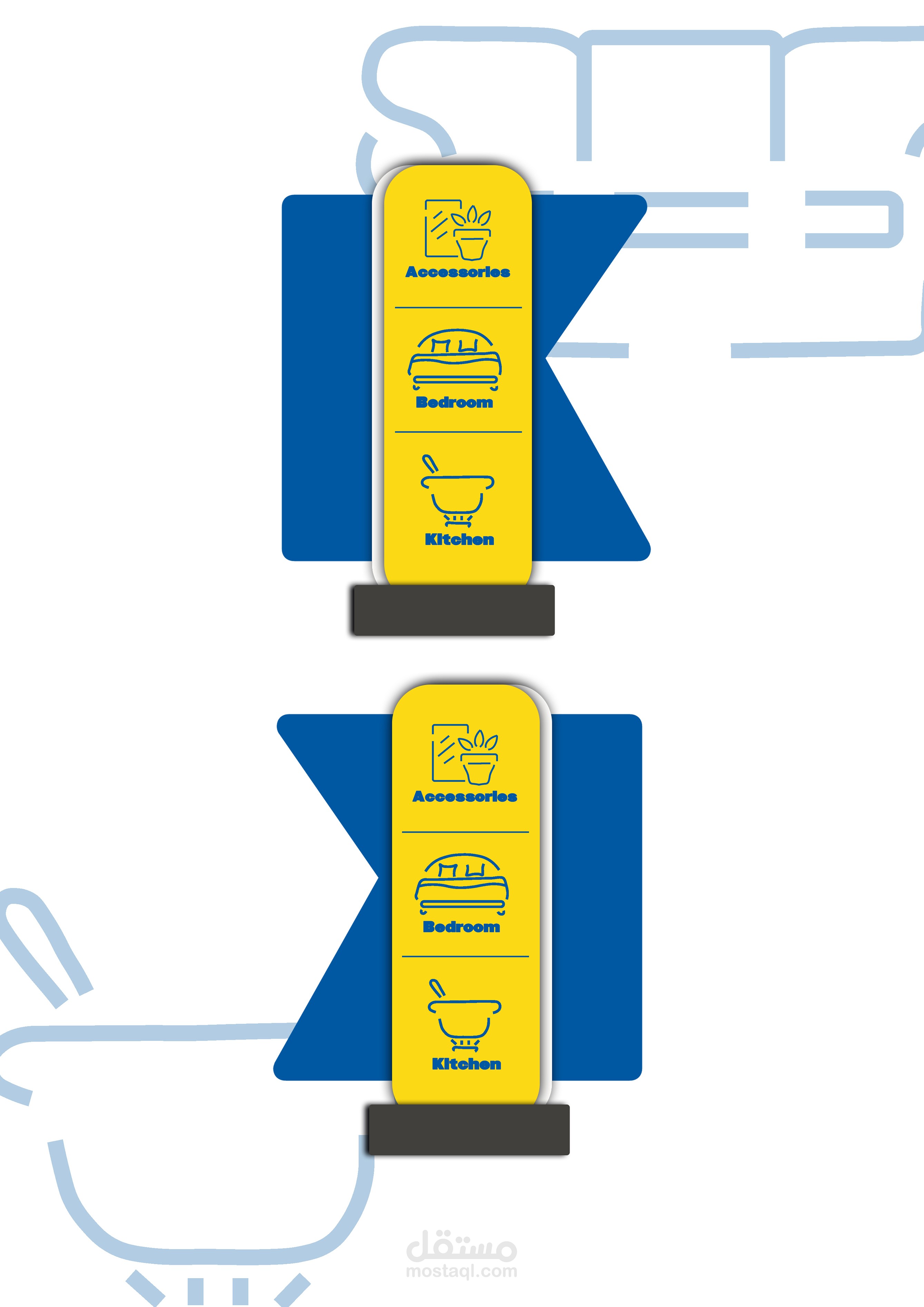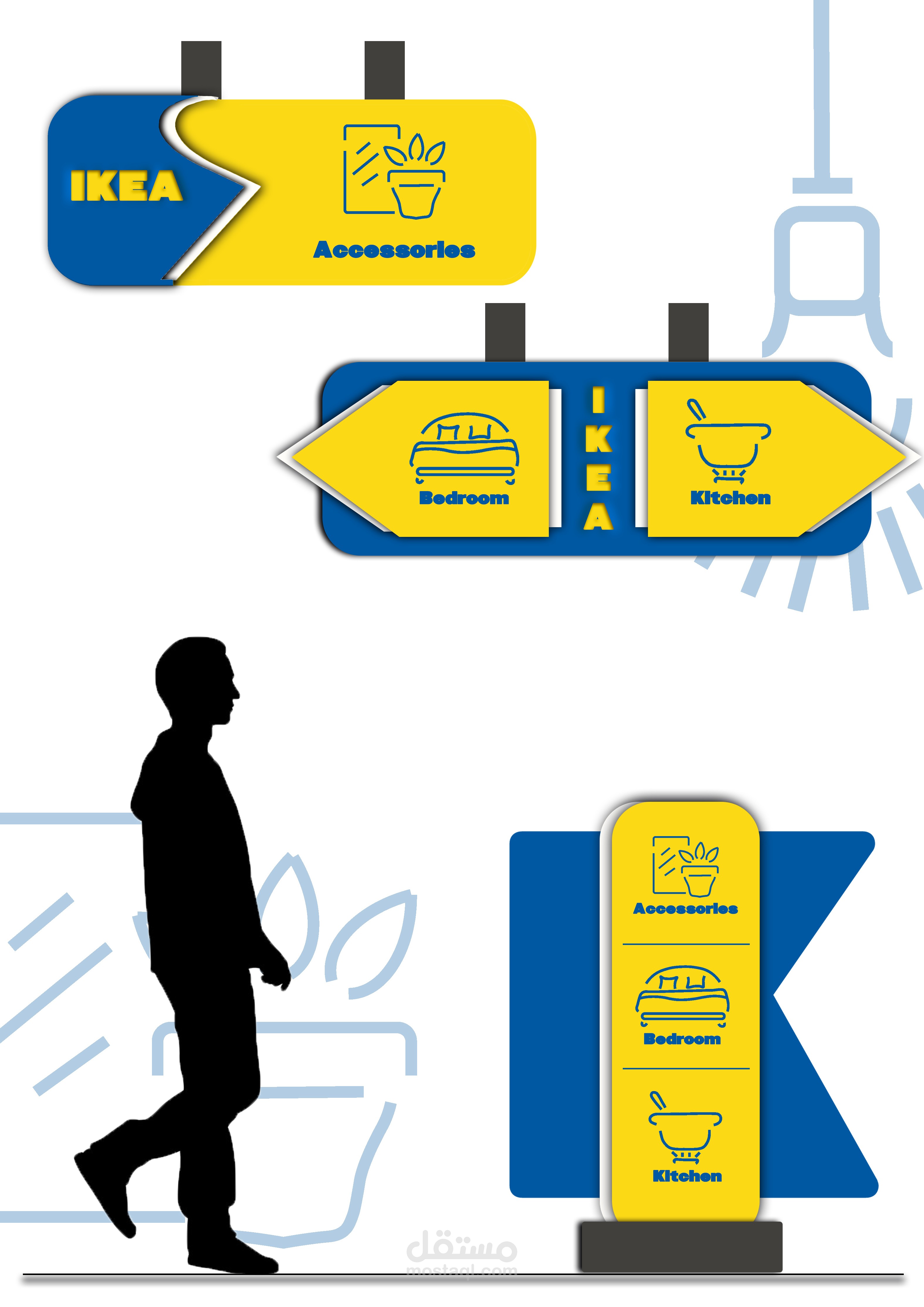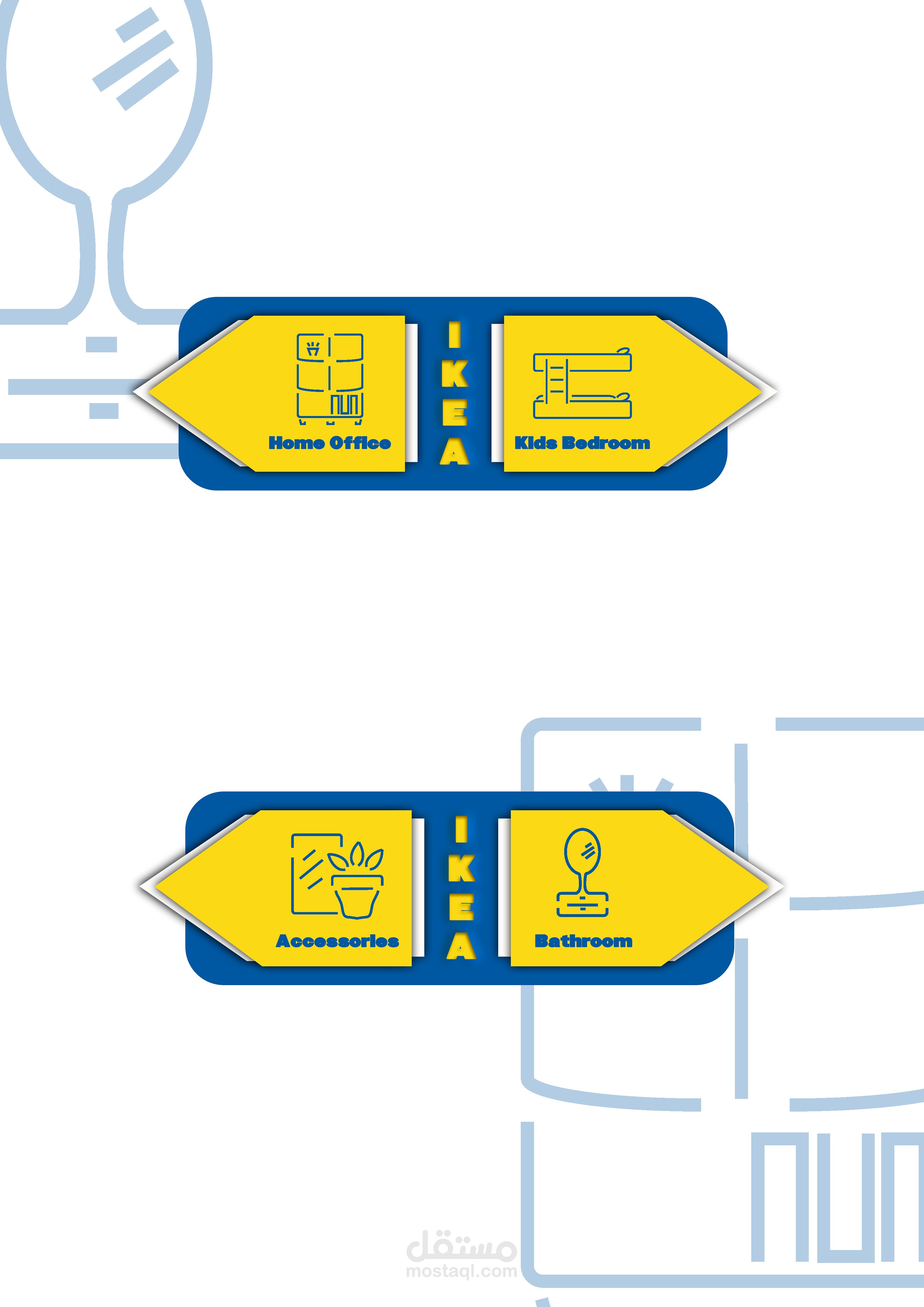 the project was to make a sign system for ikea , to guide the clients , so i designed logos for every department and sign boards