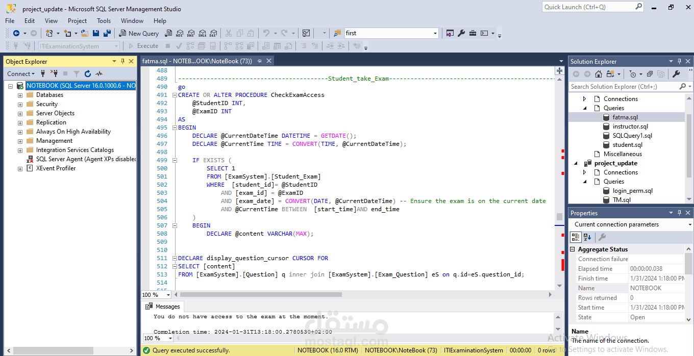 Create SQL queries for common operations (e.g., retrieving exams, saving responses).