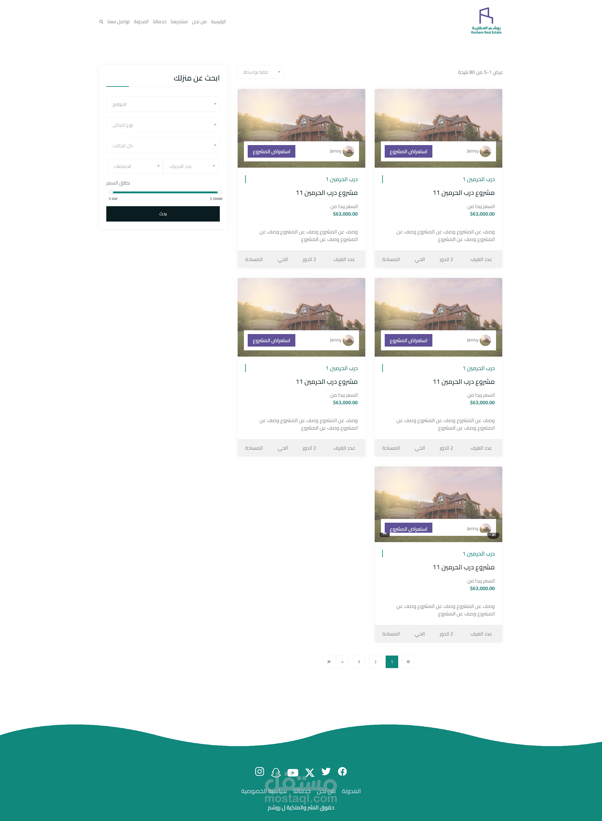 تصميم وبرمجة موقع لشركة عقارية متكامل يشمل الصفحات الاساسية وايضا المدونة وصفحات التواصل ومعرض الاعمال والخدمات وتفاصيل الخدمة وتفاصيل العمل وتفاصيل المدونة ومن نحن وتواصل معنا ومتناسق مع كل الشاشات