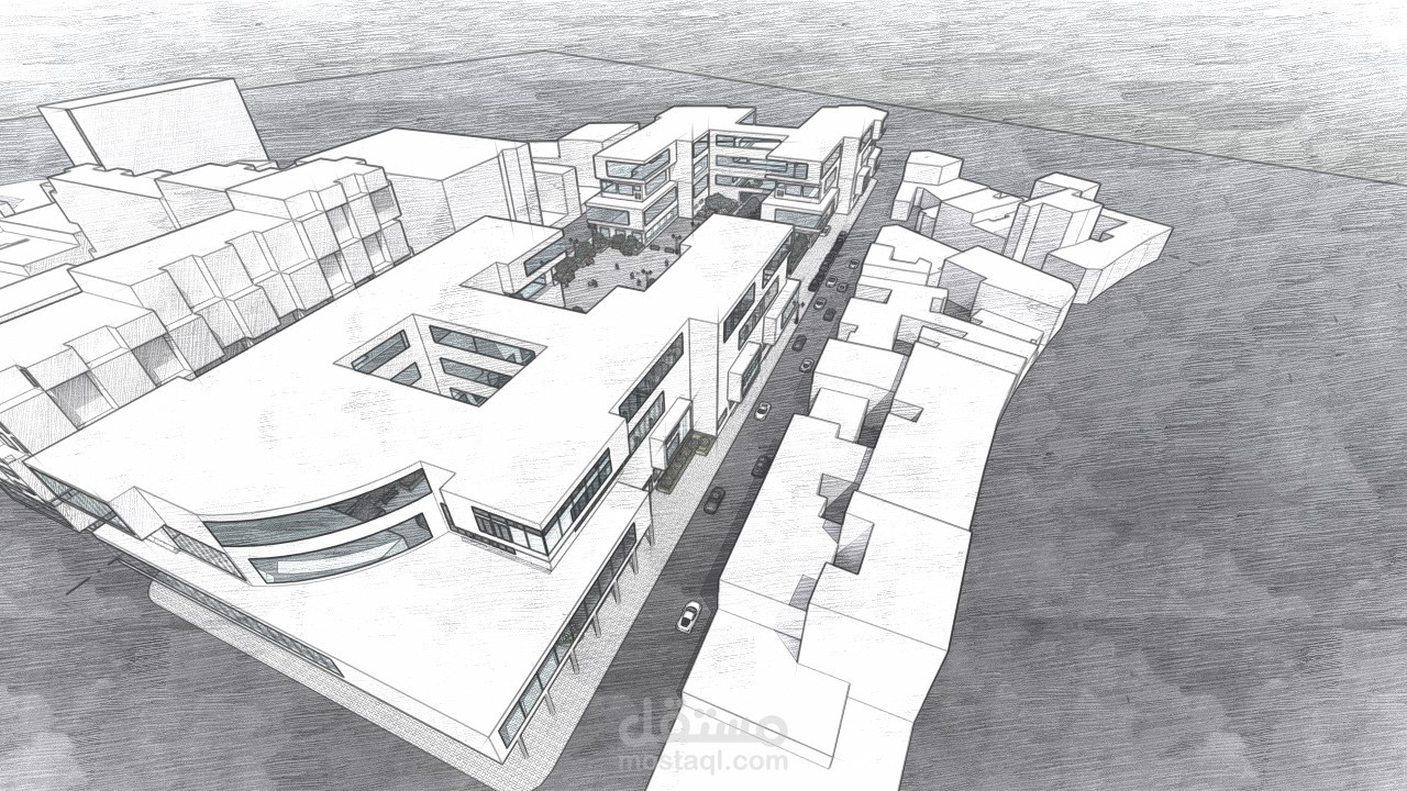 مشروع حضري يحتوي على عدة مشاريع فندق وسكن جماعي ومركز ترفيهي ومكتبة إعلامية، يشغل المشروع مساحة كبيرة مقسمة إلى ثلاث قطع أراضي، وهو مشروع تخرجي.