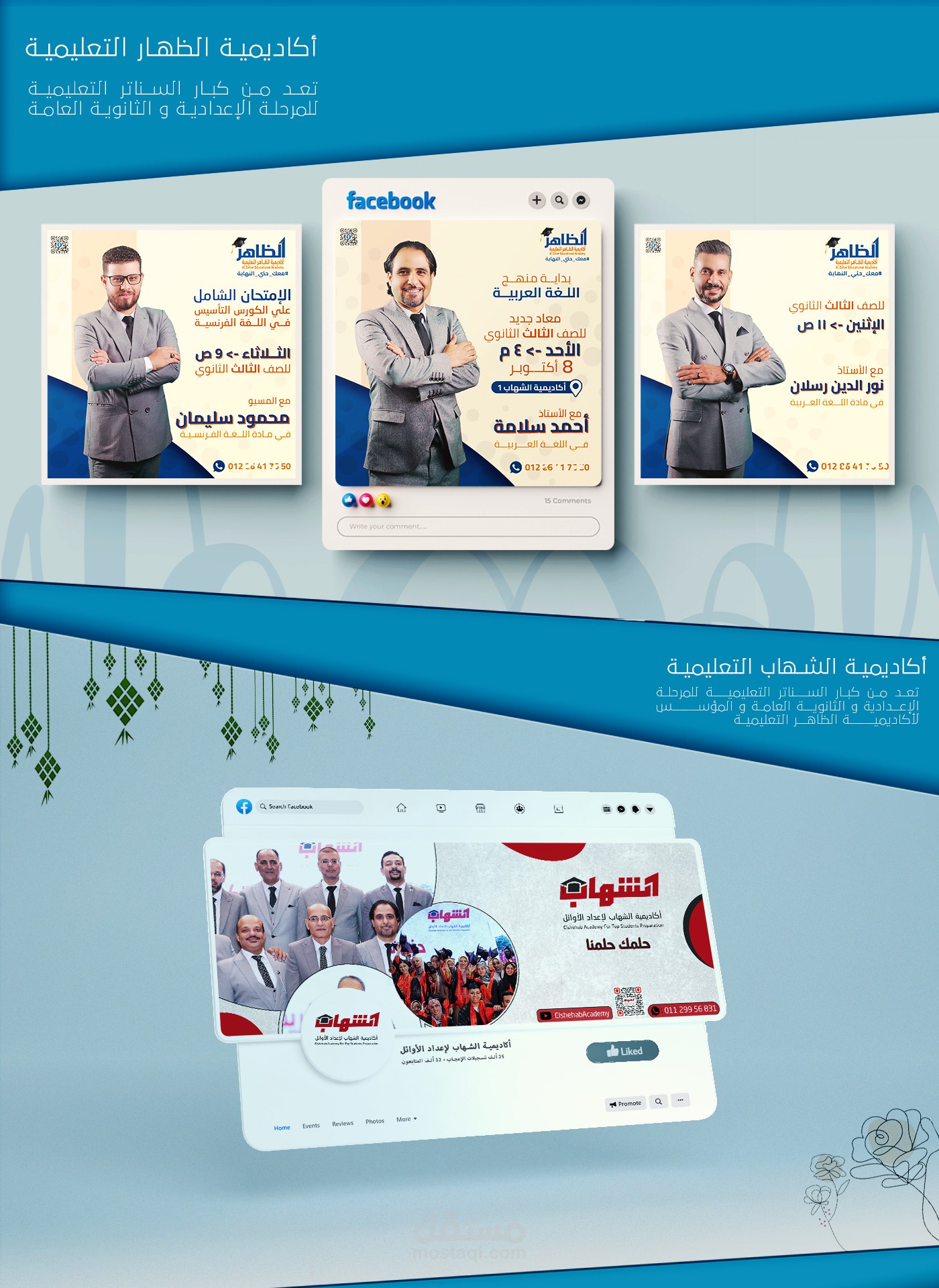 تصميم بعض من بوستات السوشيال ميديا للأكاديمية الدراسية للمراحل الثانوية العامة