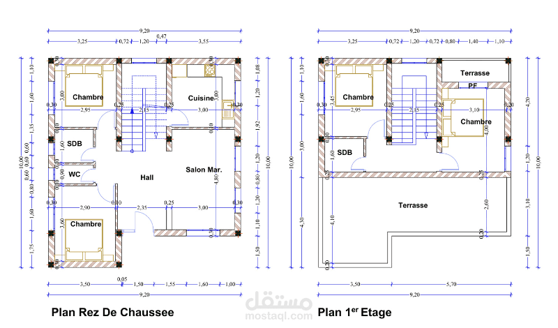 يتم توضيح توزيع الفراغات والغرف على الأرض، مع التركيز على المساحات الداخلية وتوجيه الحركة في المبنى.