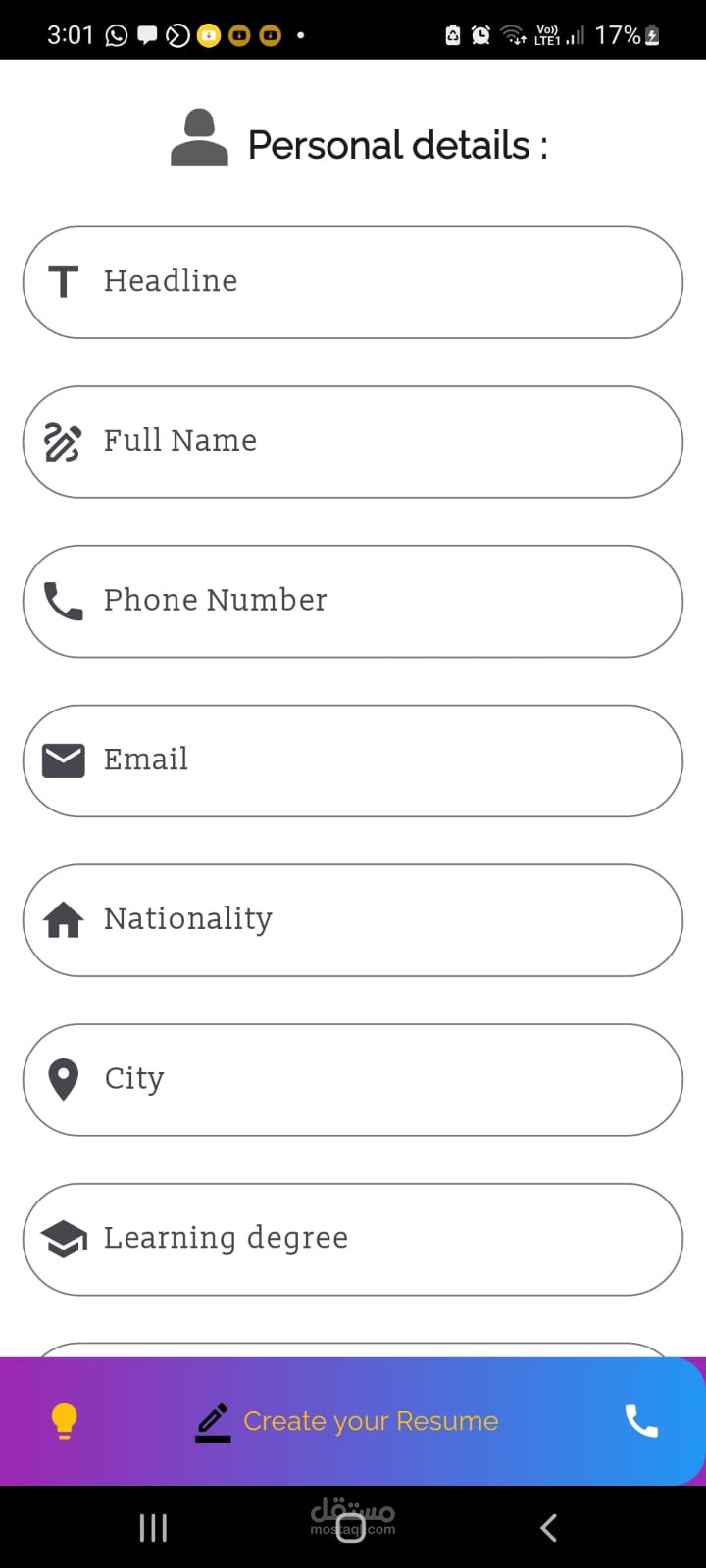 App for creating automative cv.