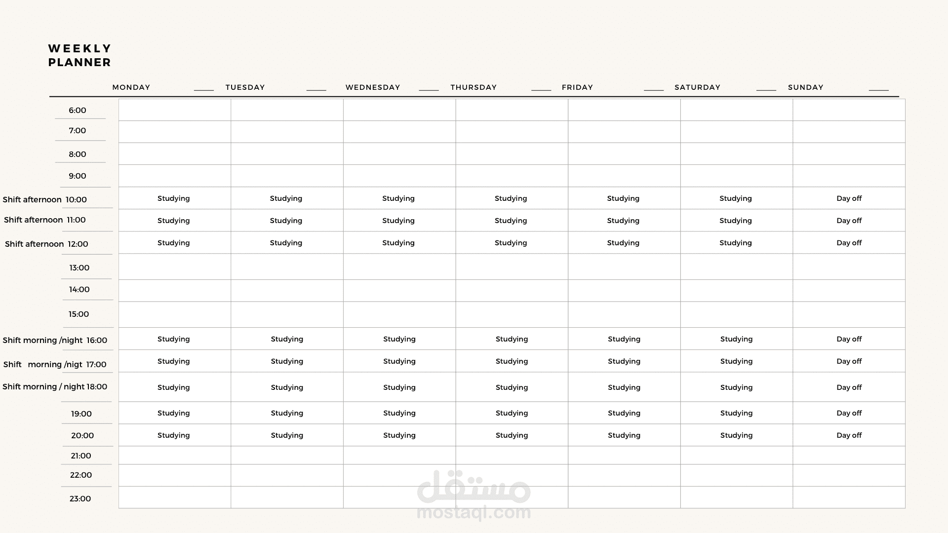 المخطط الأسبوعي هو أداة تنظيم تساعدك في تخطيط وتنظيم أنشطتك خلال الأسبوع. يتضمن عادةً مهامك اليومية، الاجتماعات، وأوقات الراحة. يهدف إلى زيادة الإنتاجية وتحسين إدارة الوقت.