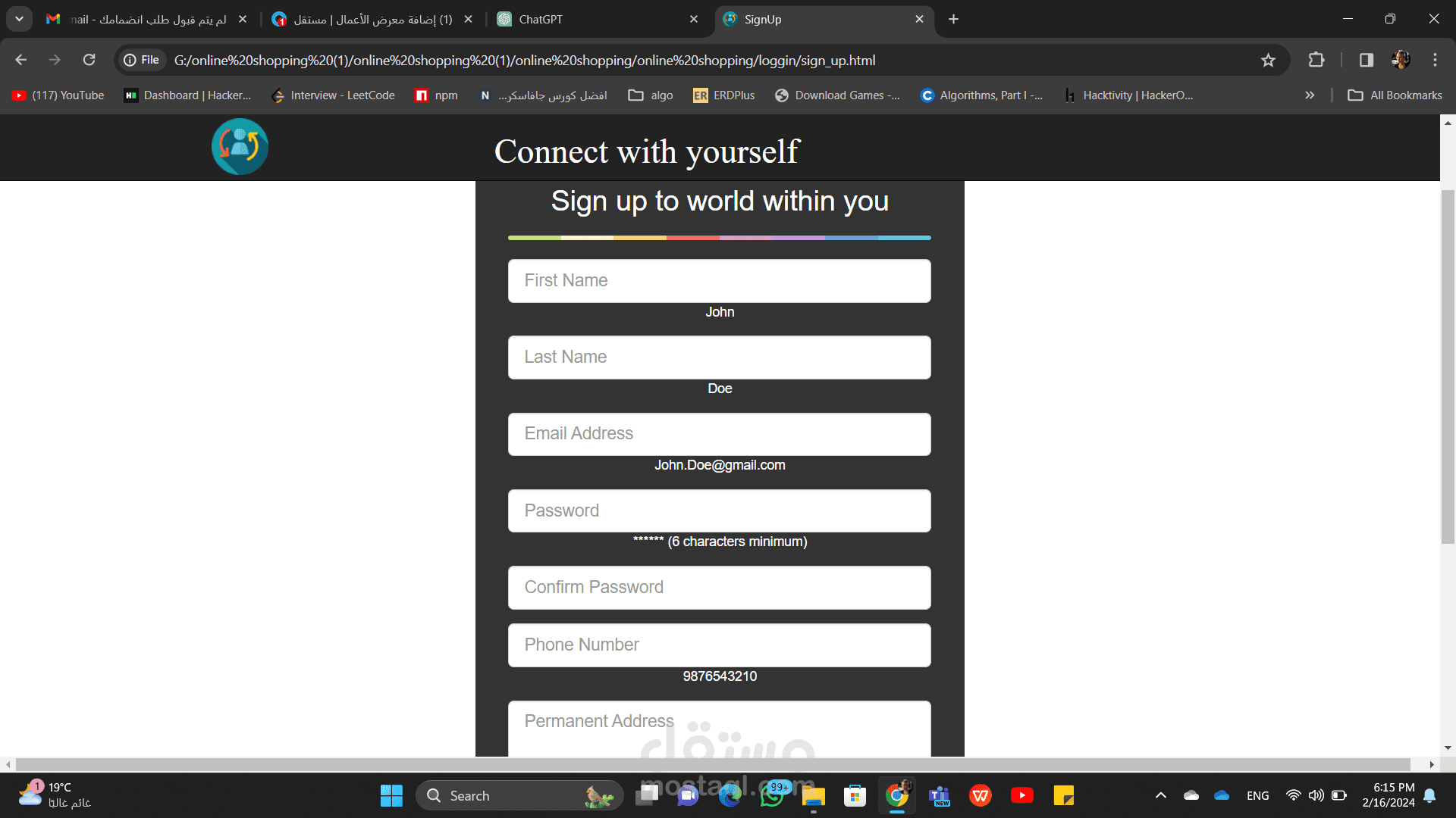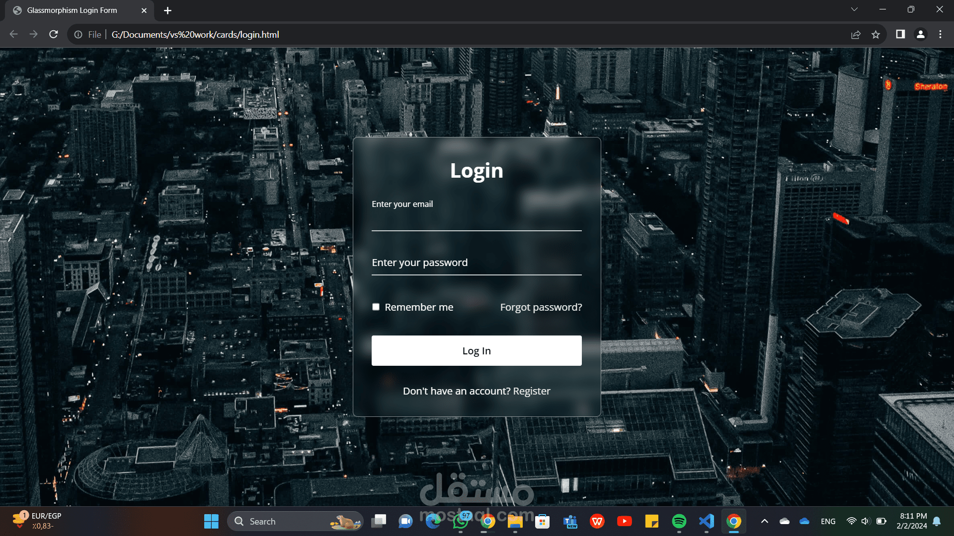 On the front-end, I design the layout and user interface using HTML, CSS, and JavaScript to create a visually appealing and intuitive login form. This includes input fields for the username or email address and password, along with elements for error messages, forgot password options, and registration links.