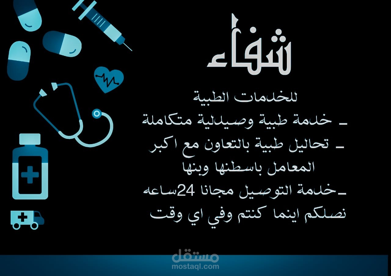 اعلانى عن افتتاح صيدليه مع تناسق الالوان مع اختيار العنوان المناسب مع التنسيق مع العميل