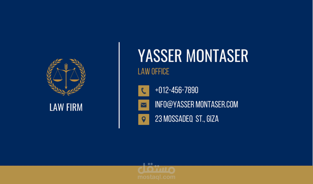 تصميم كارت شخصي لمحامي ، وتم مراعاة حسن اختيار الالوان ، فتم اختيار الون الازرق ليدل علي الثقة، والكرامة، والذكاء، والسلطة، والسيطرة.