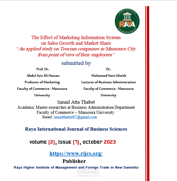 منشورة في أكبر مجلة مصرية للعلوم الإدارية: "Raya International Journal of Business Sciences (RIJCS)"، مجلد الثاني - العدد رقم (7)، الصفحة 151-218.