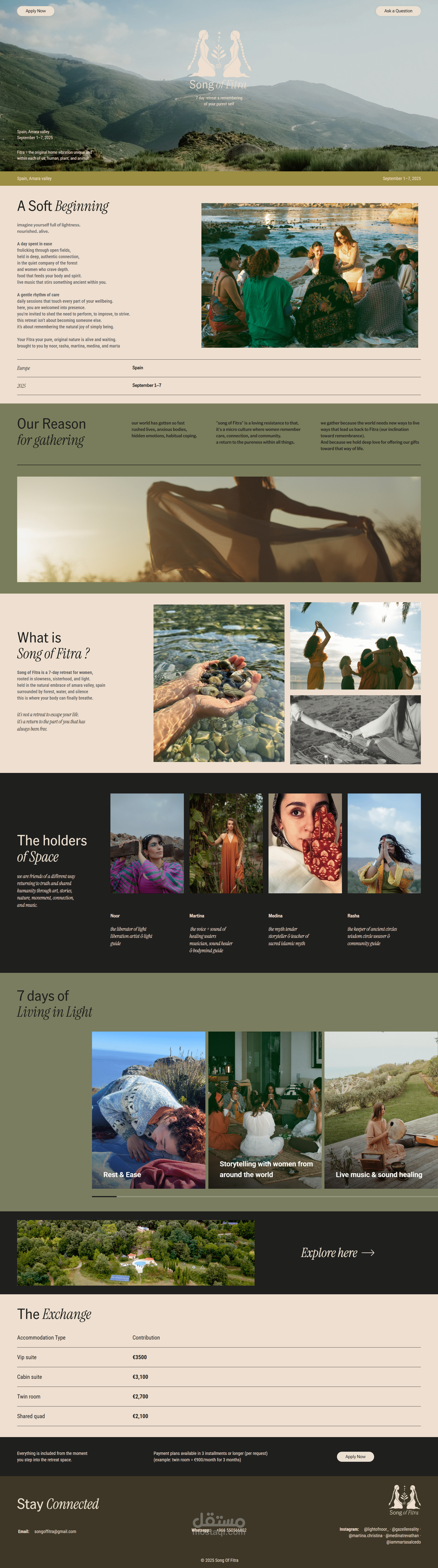 Minimalist wellness trips website for Song of Fitra in Saudi Arabia, developed with WordPress and Elementor. Features a clean, modern UX/UI focused on simplicity and ease of navigation. Fully responsive for desktop, tablet, and mobile, with fast-loading performance and SEO-friendly structure. Designed to reflect the brand’s serene and nature-inspired identity.