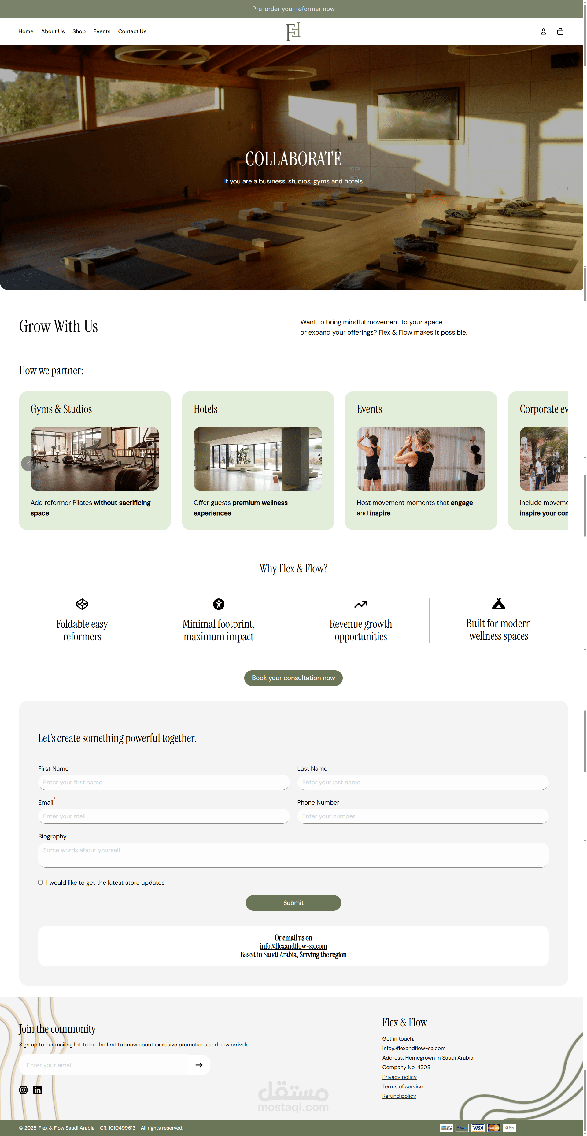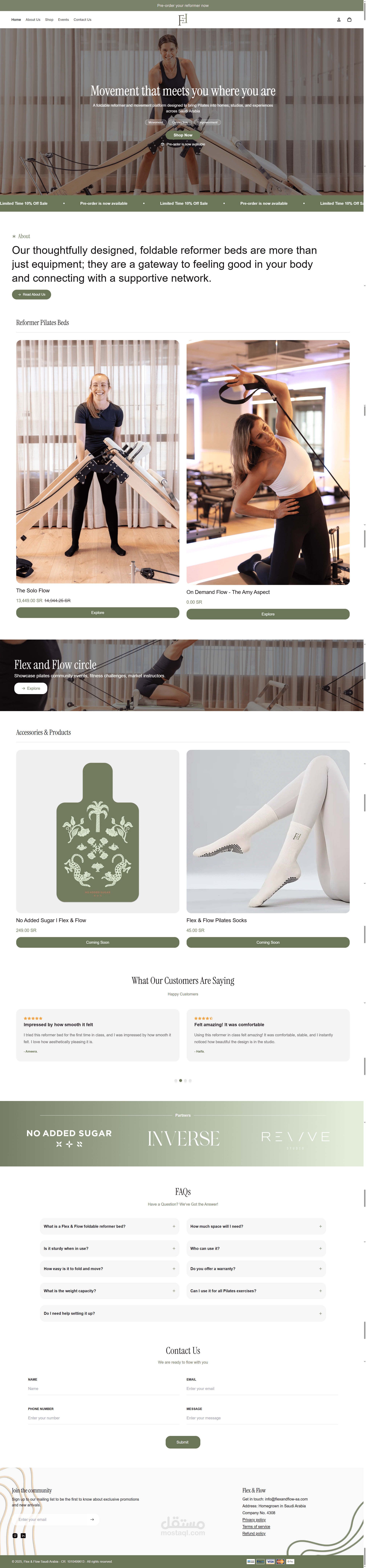 Premium bilingual website for Flex and Flow in Saudi Arabia, showcasing thoughtfully designed foldable reformer beds. Built with WordPress and Elementor, enhanced with custom development for a seamless user experience. Modern UX/UI design optimized for desktop, tablet, and mobile. Fully responsive and fast-loading, with Arabic and English language support. Designed to highlight the brand’s mission of promoting well-being and fostering a supportive community.
