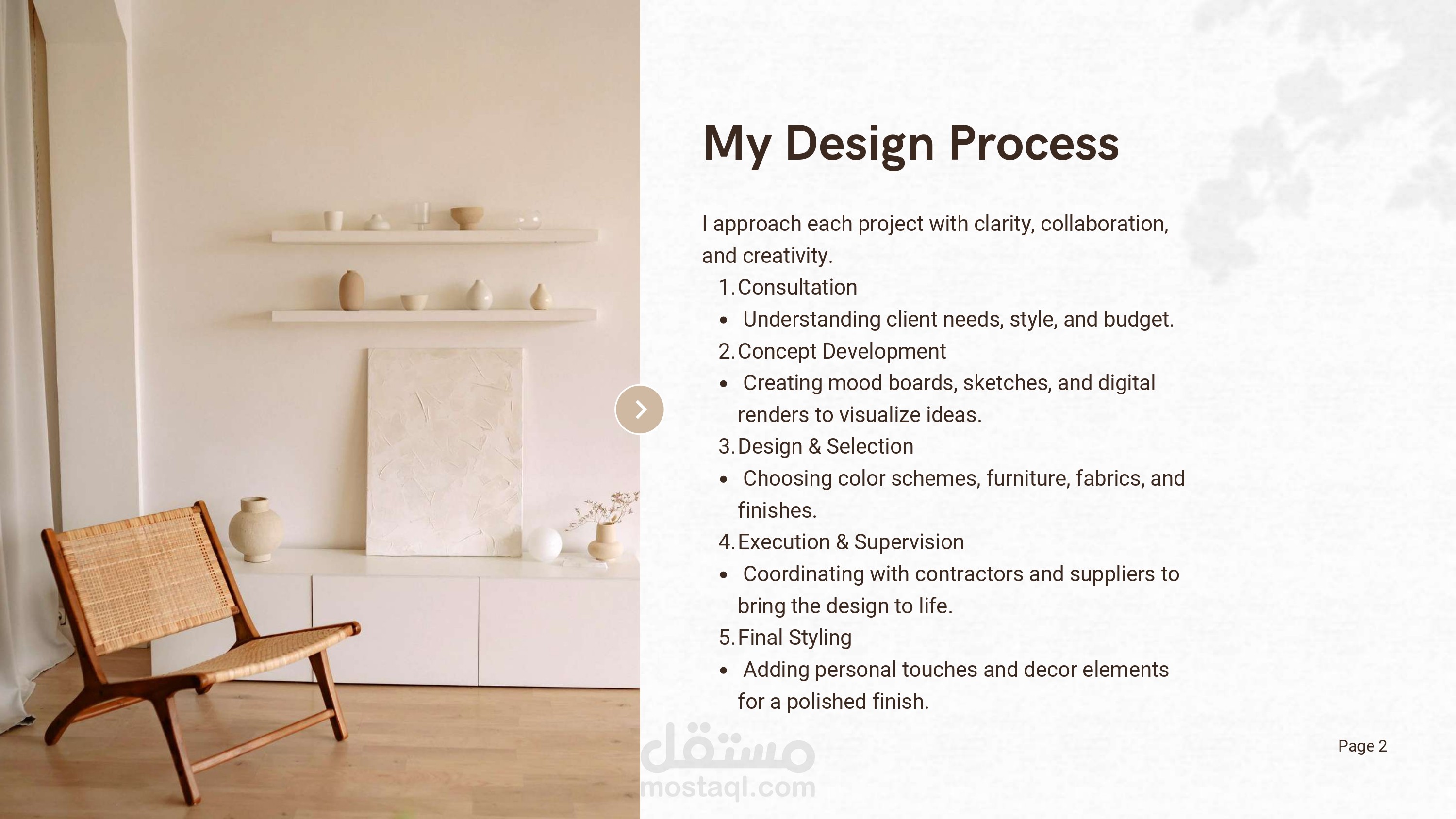 ملف أعمال يعكس الاحترافية والوضوح والابتكار، وتفاصيل المصمم من خبرات ومشاريع منجزة.