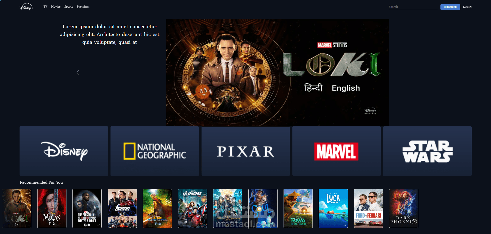 Disney (موقع عرض أفلام): تصميم وتطوير موقع يعرض مجموعة من أفلام ديزني. يتميز الموقع بتصميم جذاب وسهولة الاستخدام لعرض واختيار الأفلام المفضلة.