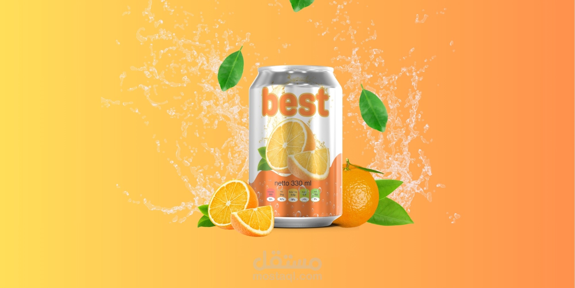 A complete design for the Orange Cans drink product and a social media design