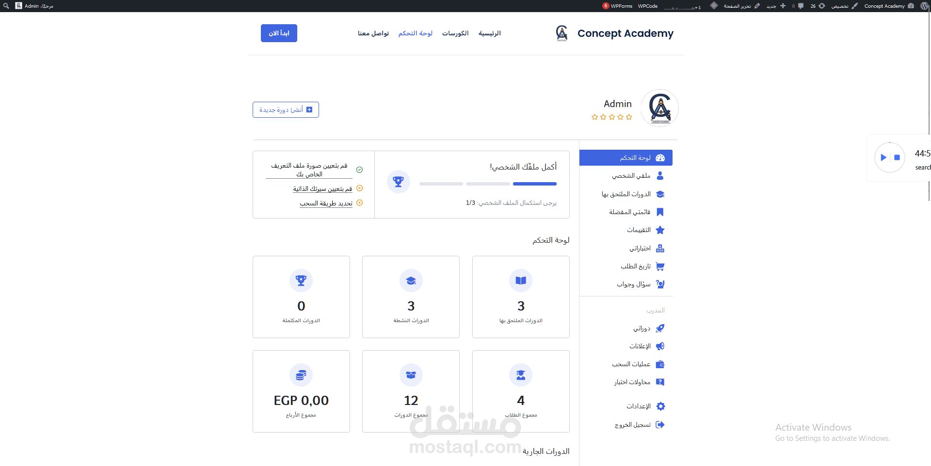 - لوحه تحكم لكل معلم