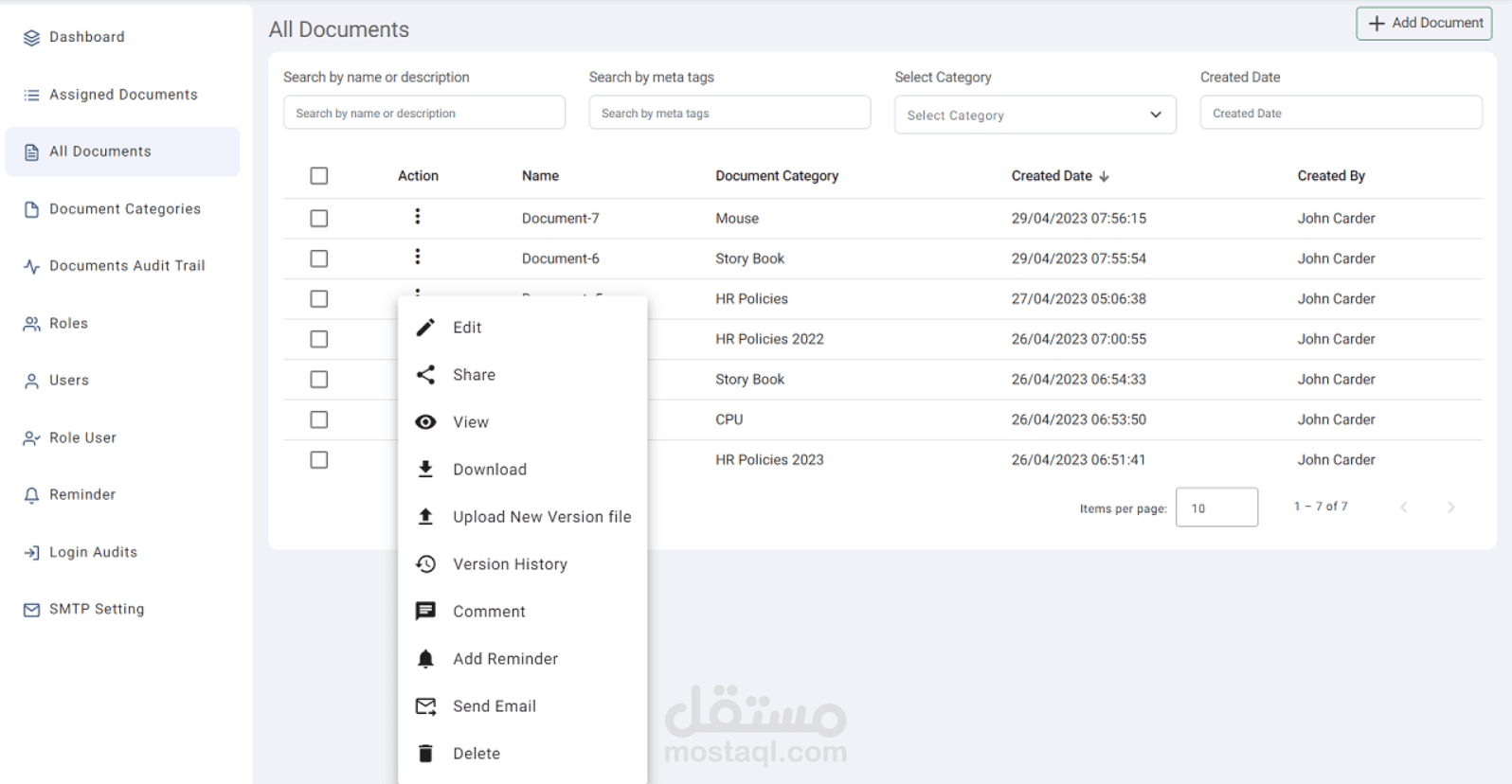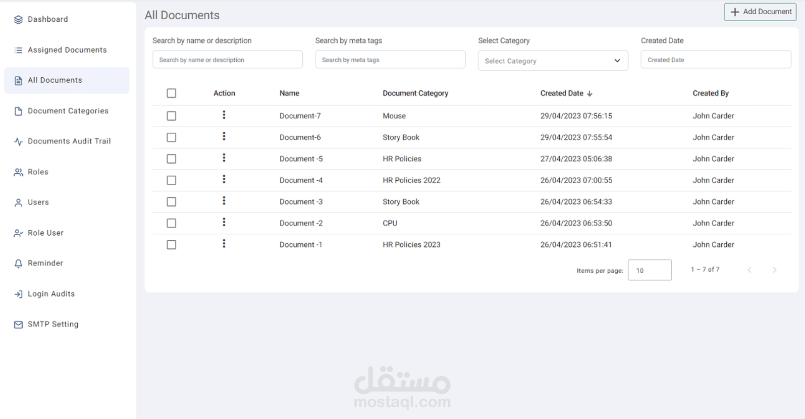 إدارة المستندات يتيح لك نظام إدارة المستندات إمكانية تخزين عدد غير محدود من المستندات بشكل ملائم، ويتم تنظيمها حسب الفئة أو الفئة الفرعية. توفر لك هذه الميزة طريقة مرنة وفعالة لإدارة مستنداتك والوصول إليها، مما يضمن إمكانية البحث بسهولة عن المعلومات المهمة وإتاحتها بسهولة عندما تحتاج إليها. من خلال القدرة على تصنيف مستنداتك وتصنيفها فرعيًا، يمكنك الاحتفاظ بمستودع رقمي منظم وجيد التنظيم، مما يعزز ممارسات إدارة المستندات بشكل أفضل داخل مؤسستك.