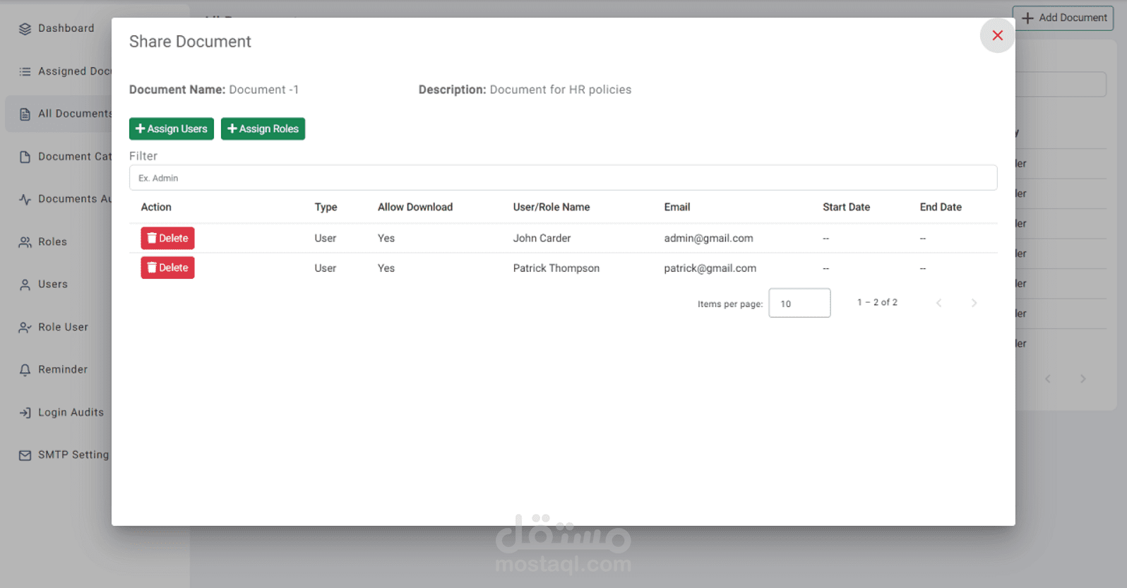 يسمح لك بتحميل مستندات متعددة ومشاركتها مع عدد غير محدود من مستخدمي النظام. بالإضافة إلى ذلك، فهو يوفر خيار مشاركة المستندات لفترة محددة ويسمح بخيار التنزيل.