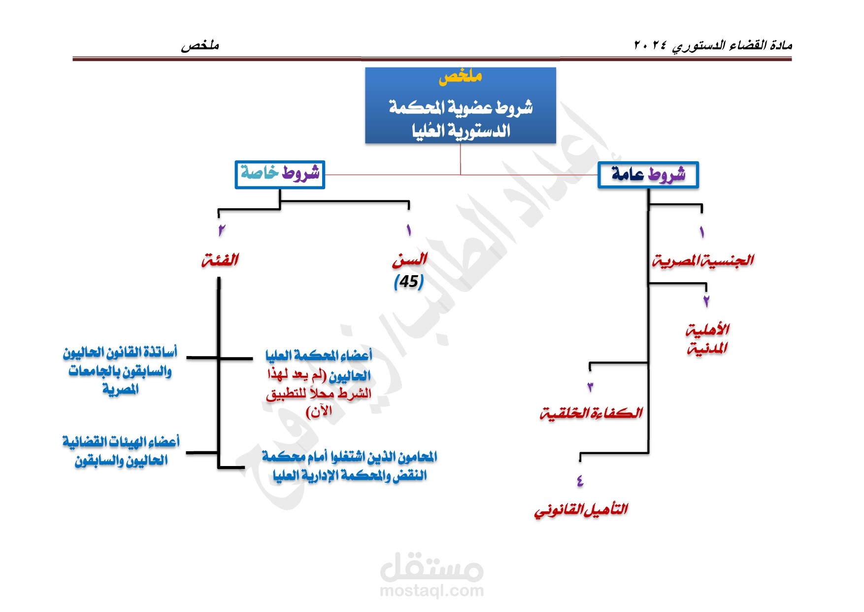خريطة ذهنية Mind Map لملخص في مادة القضاء الدستوري (لطلاب كلية الحقوق)
